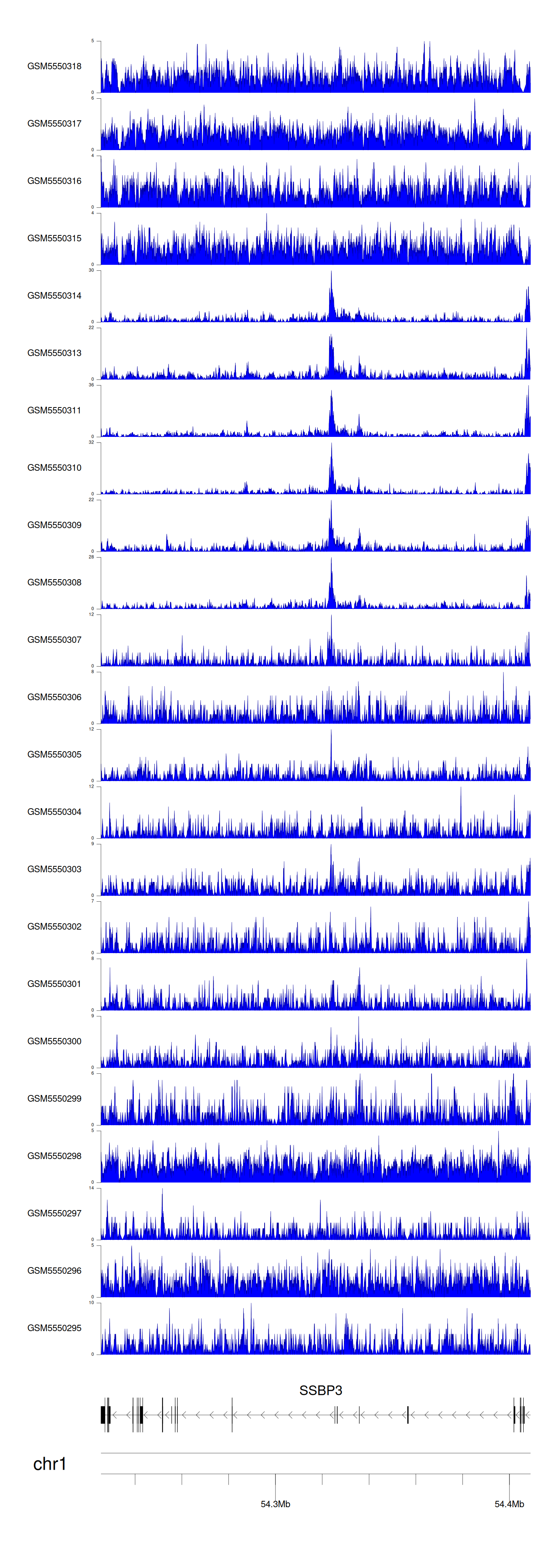 > Dataset: GSE143026 - SSBP3 peak across samples