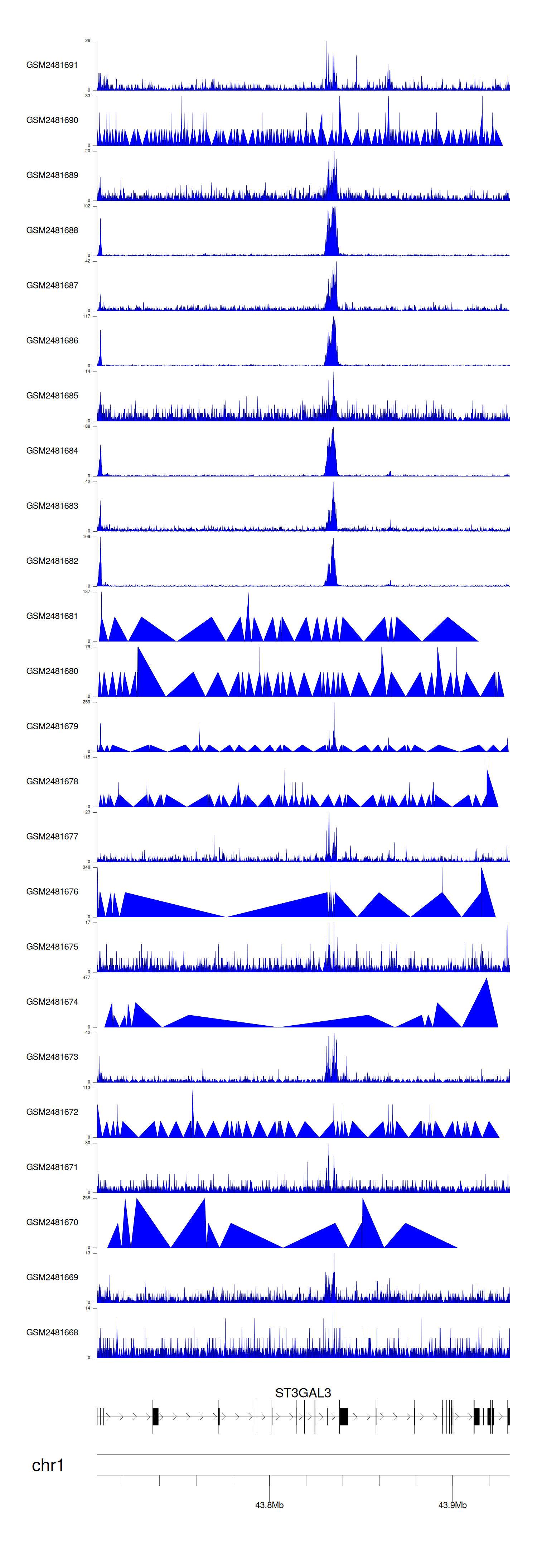 > Dataset: GSE94732 - ST3GAL3 peak across samples