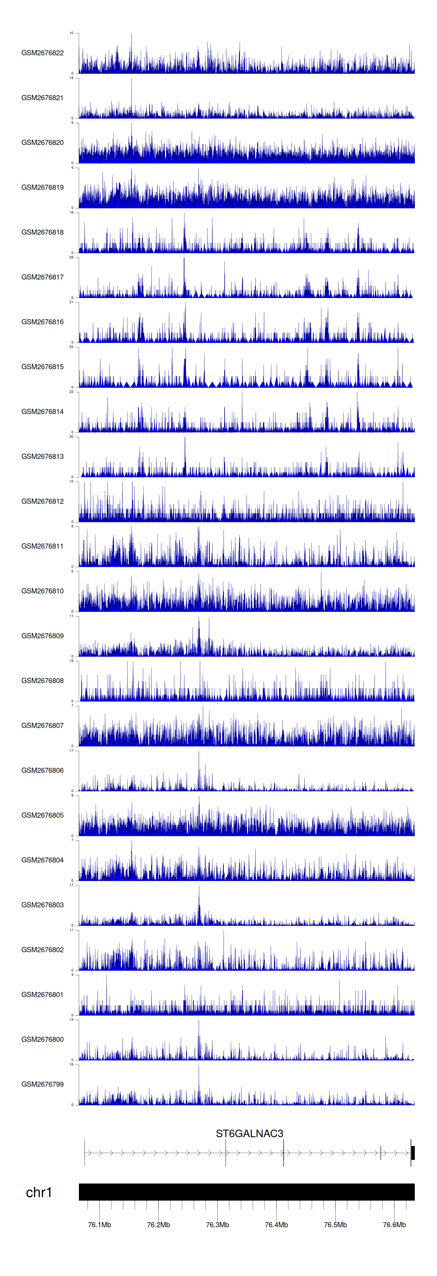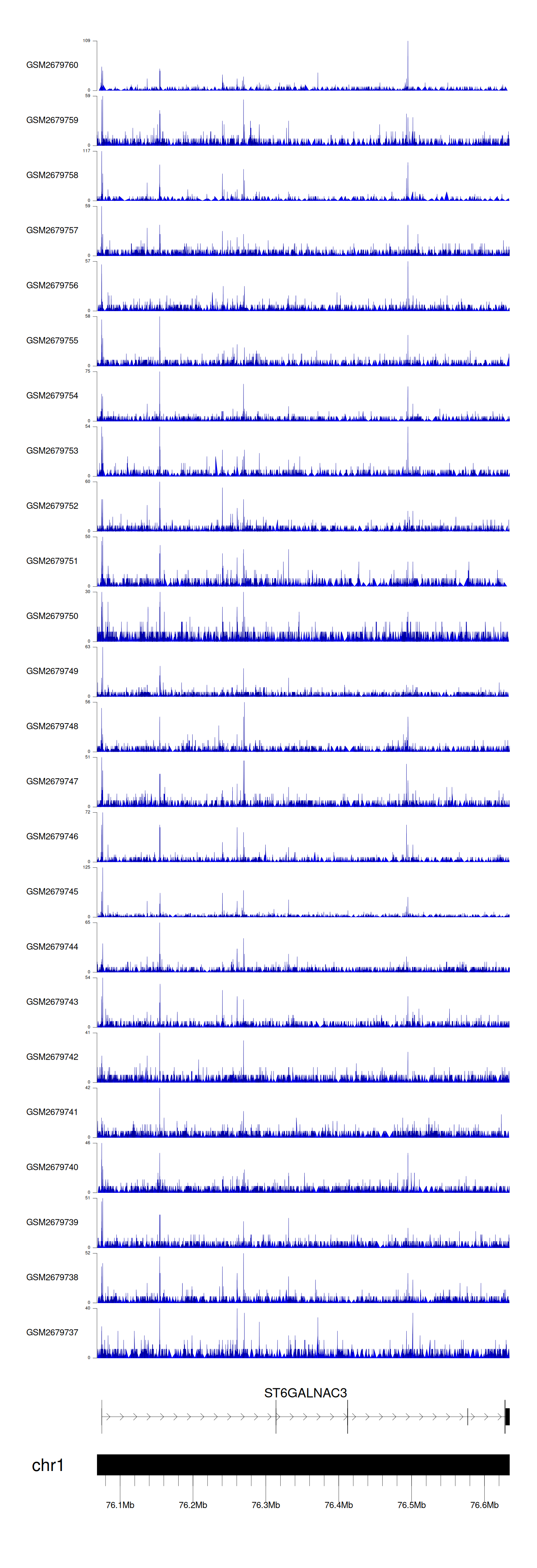 > Dataset: GSE100376 - ST6GALNAC3 peak across samples