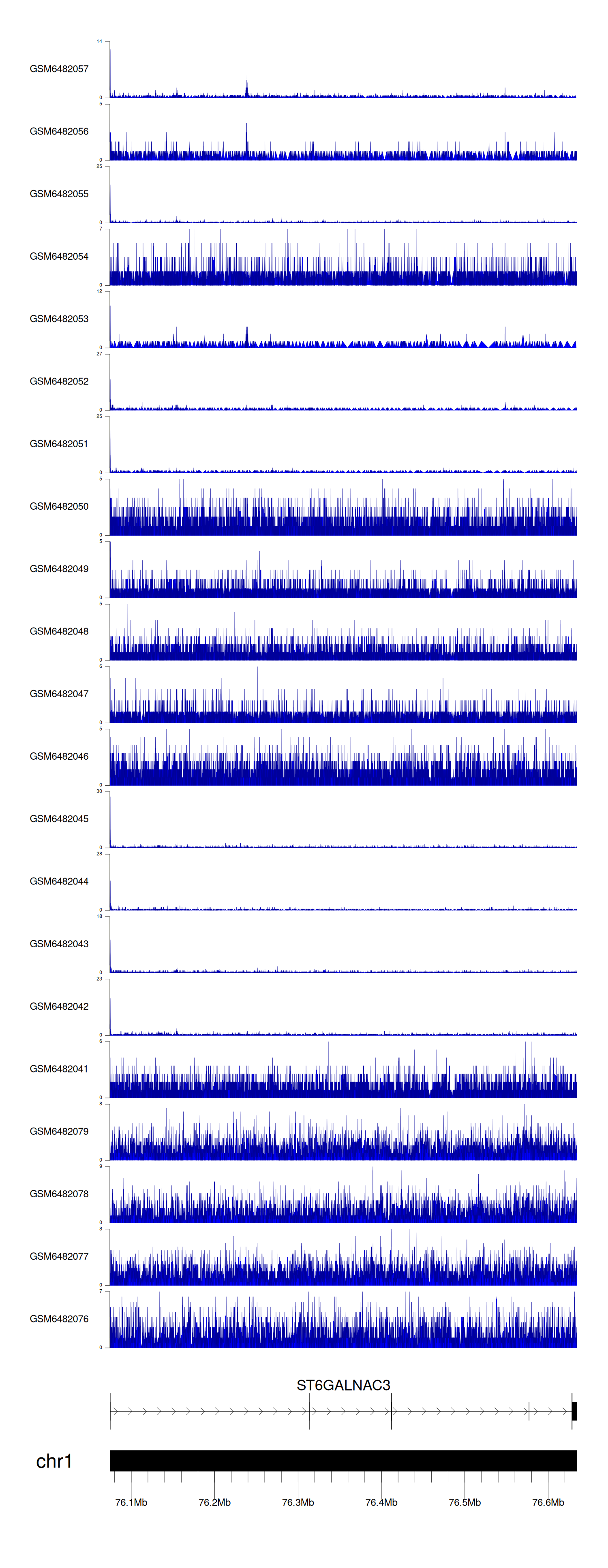> Dataset: GSE165703 - ST6GALNAC3 peak across samples