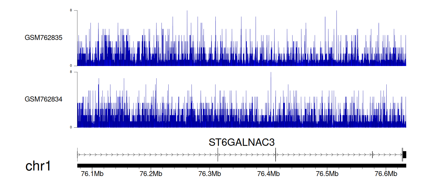 > Dataset: GSE30738 - ST6GALNAC3 peak across samples