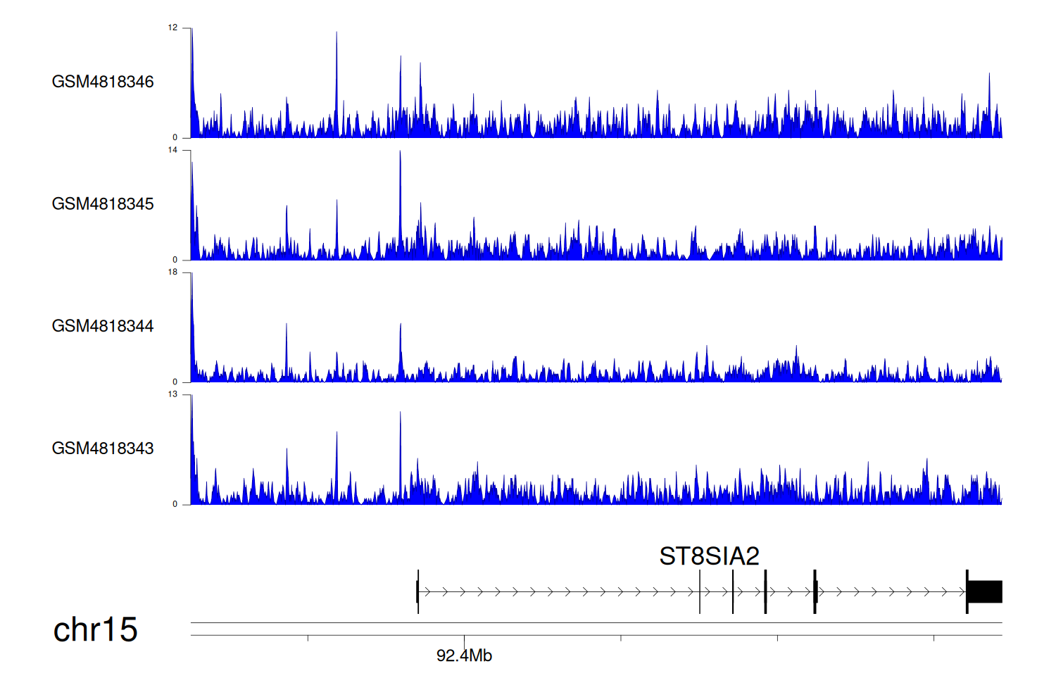> Dataset: GSE68402 - ST8SIA2 peak across samples