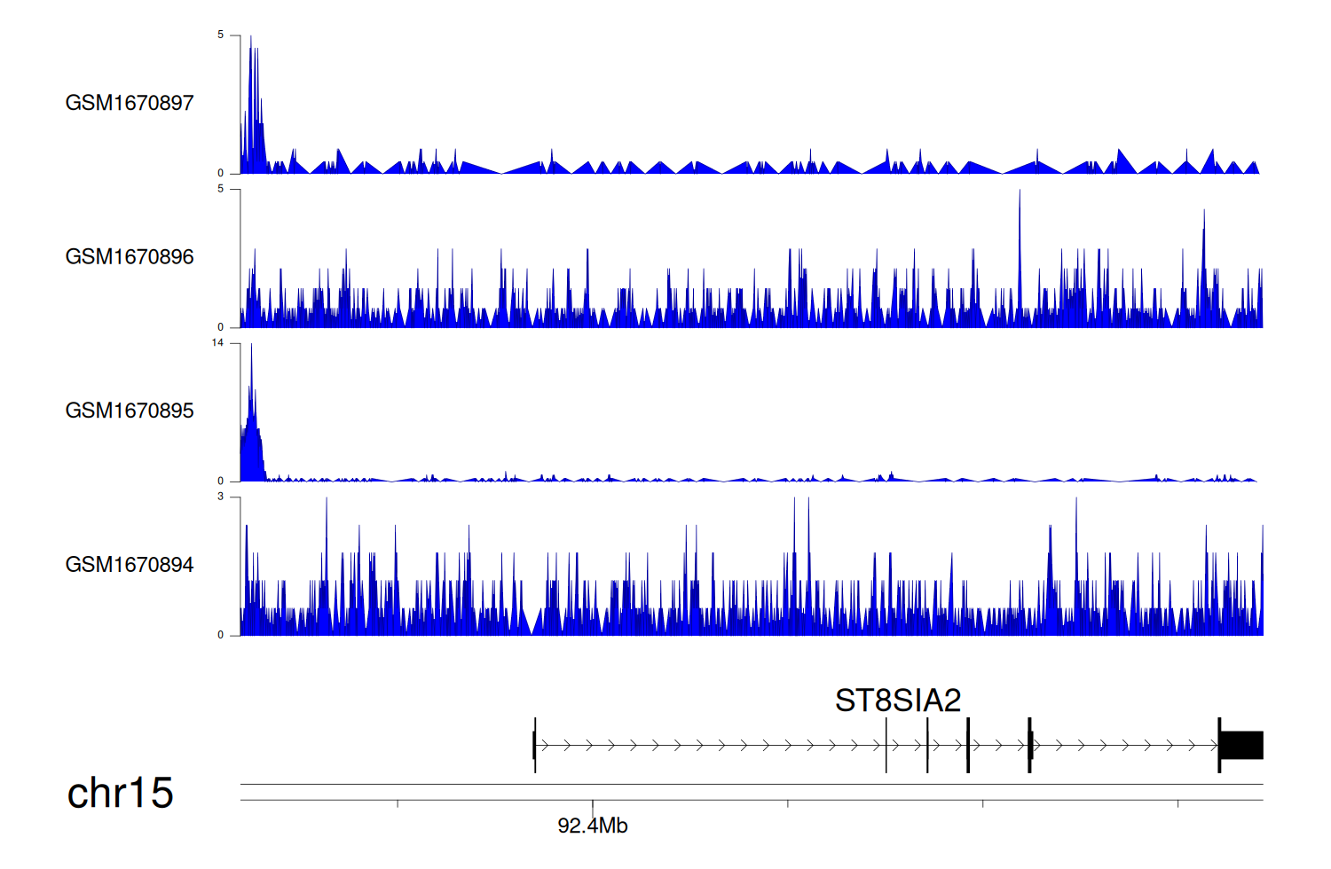 > Dataset: GSE100400 - ST8SIA2 peak across samples