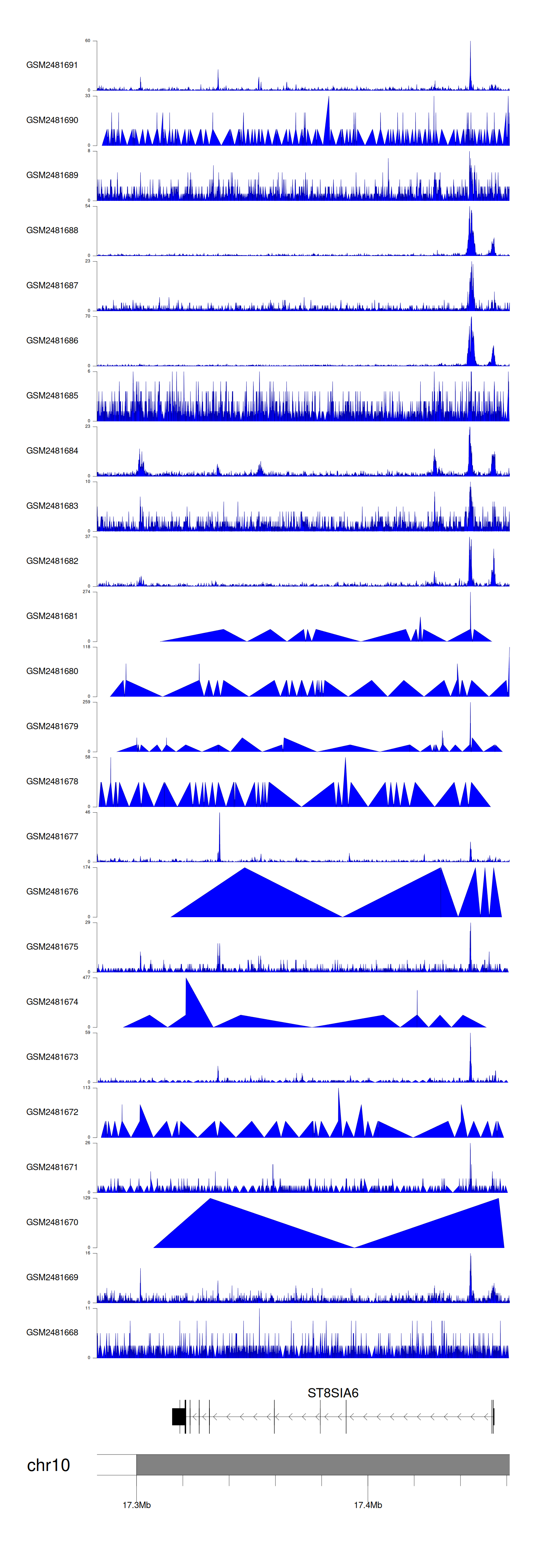 > Dataset: GSE94732 - ST8SIA6 peak across samples