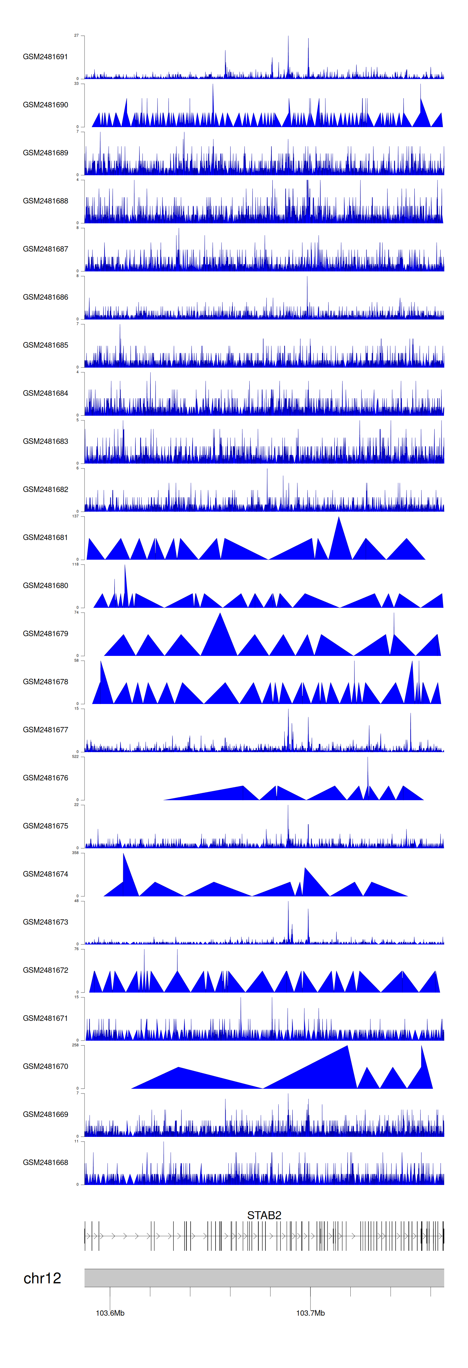This gene encodes a large, transmembrane receptor protein which may function in angiogenesis, lymphocyte homing, cell adhesion, or receptor scavenging. The protein contains 7 fasciclin, 15 epidermal growth factor (EGF)-like, and 2 laminin-type EGF-like domains as well as a C-type lectin-like hyaluronan-binding Link module. The protein is primarily expressed on sinusoidal endothelial cells of liver, spleen, and lymph node. The receptor has been shown to bind and endocytose ligands such as hyaluronan, low density lipoprotein, Gram-positive and Gram-negative bacteria, and advanced glycosylation end products. Supporting its possible role as a scavenger receptor, the protein has been shown to cycle between the plasma membrane and lysosomes. [provided by RefSeq, Jul 2008] |
