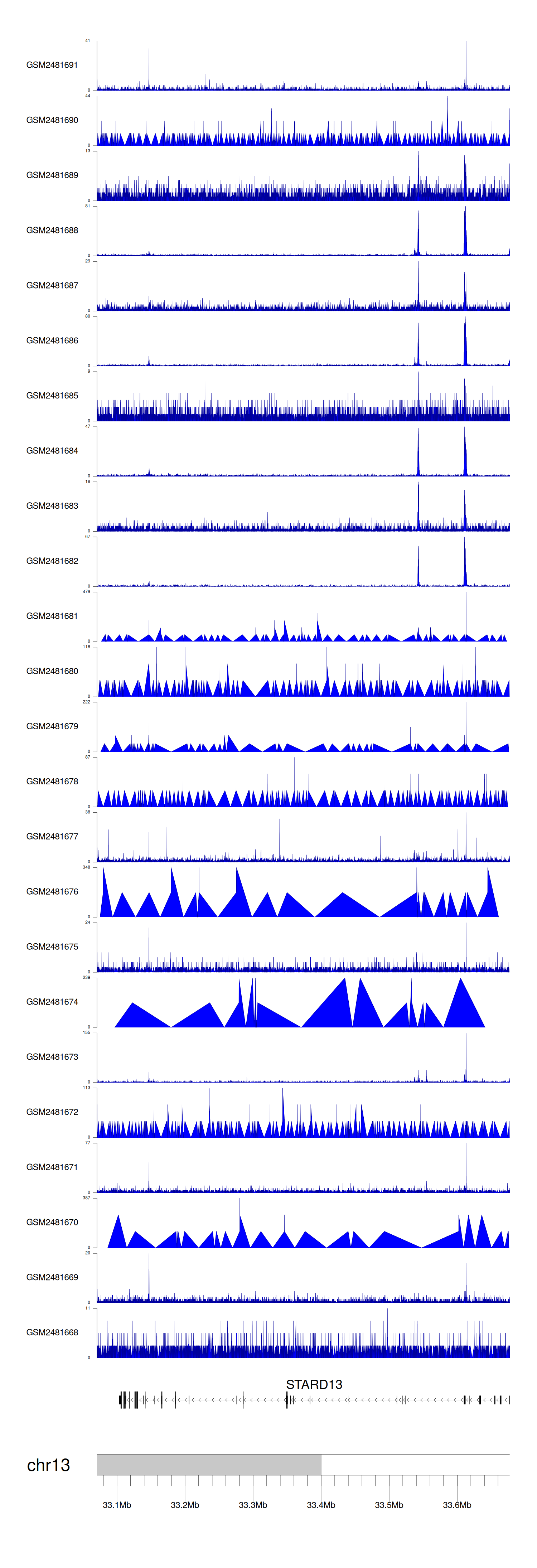 This gene encodes a protein which contains an N-terminal sterile alpha motif (SAM) for protein-protein interactions, followed by an ATP/GTP-binding motif, a GTPase-activating protein (GAP) domain, and a C-terminal STAR-related lipid transfer (START) domain. It may be involved in regulation of cytoskeletal reorganization, cell proliferation, and cell motility, and acts as a tumor suppressor in hepatoma cells. The gene is located in a region of chromosome 13 that is associated with loss of heterozygosity in hepatocellular carcinomas. Alternatively spliced transcript variants encoding different isoforms have been described for this gene. [provided by RefSeq, Aug 2011] |