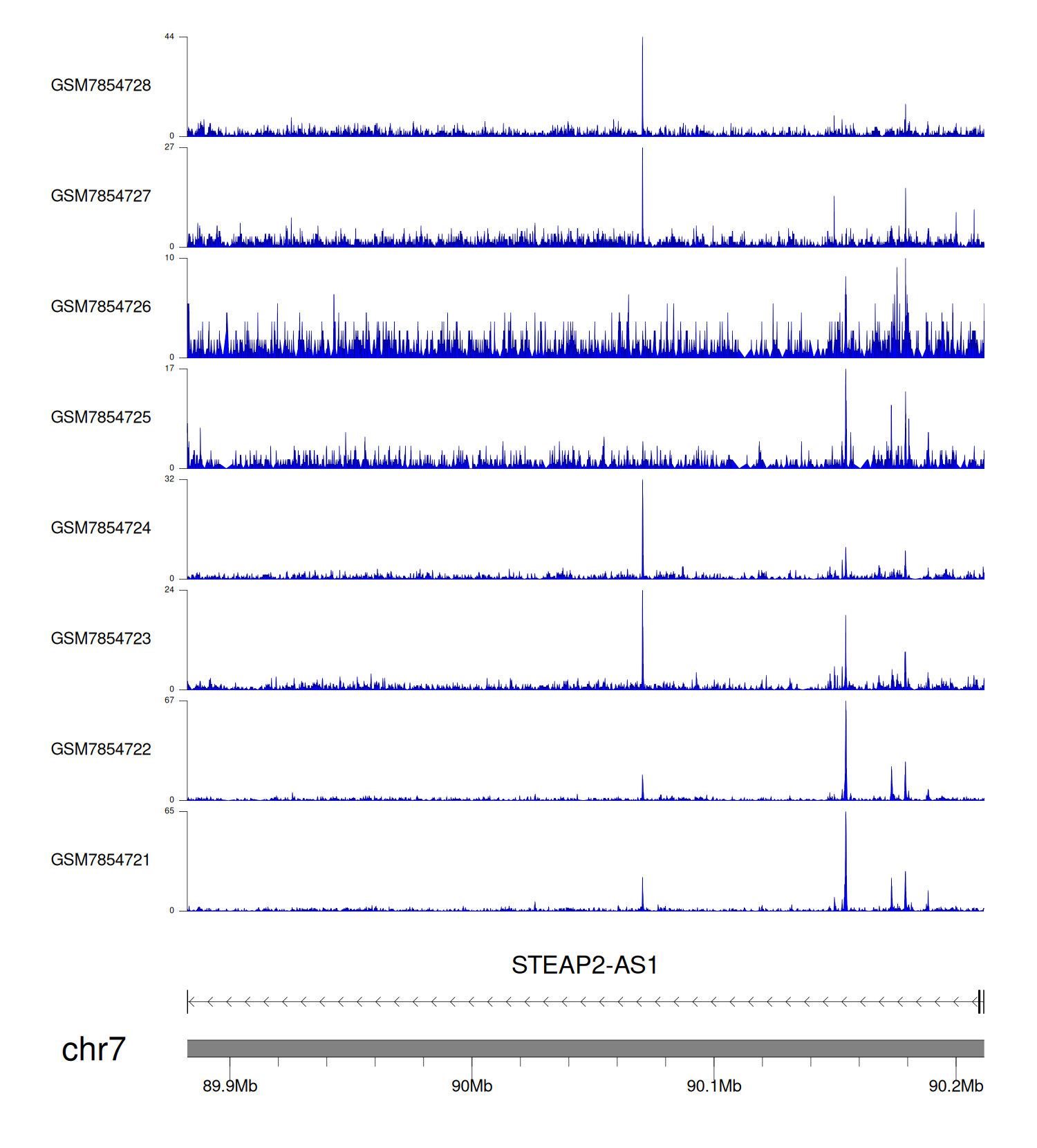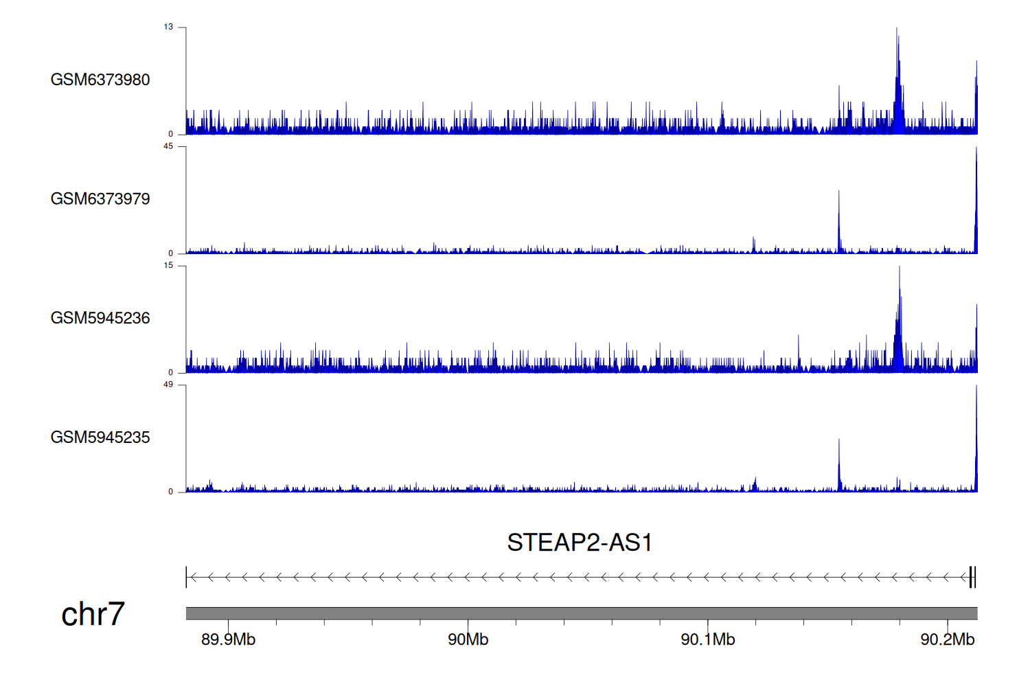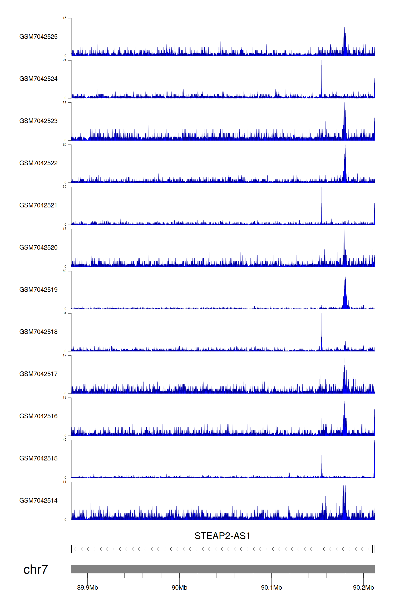 > Dataset: GSE198334 - STEAP2-AS1 peak across samples