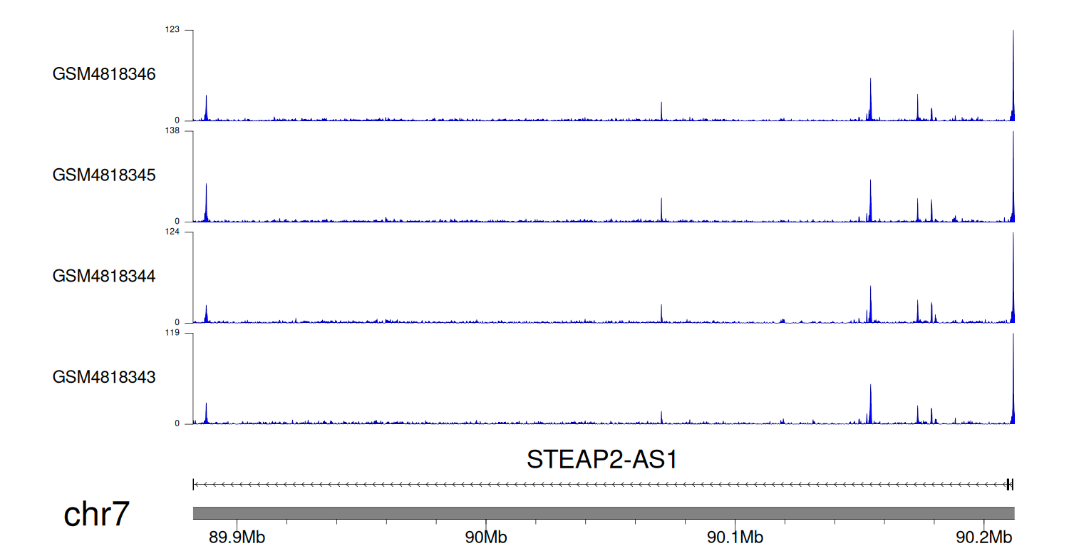 > Dataset: GSE131257 - STEAP2-AS1 peak across samples