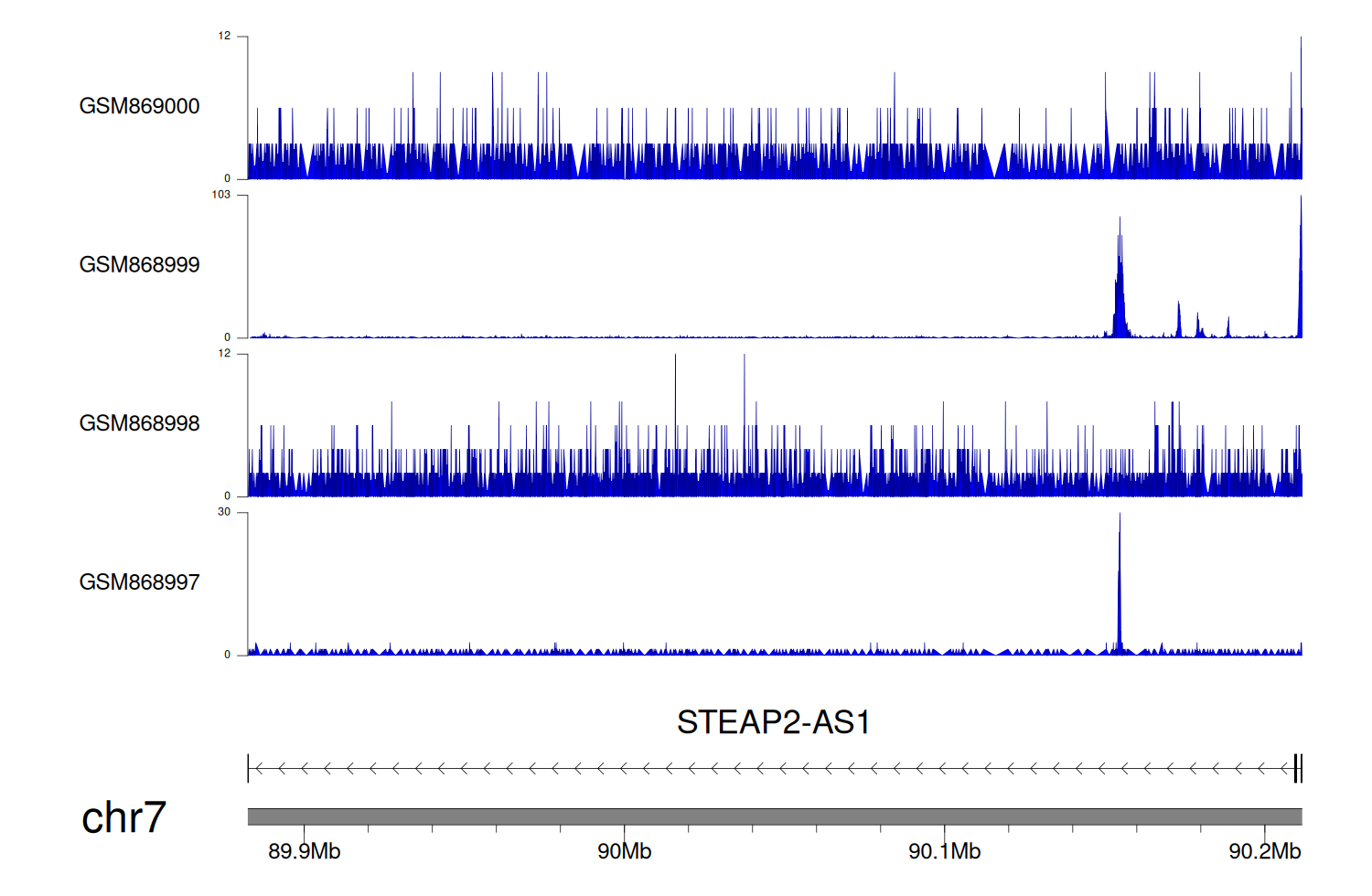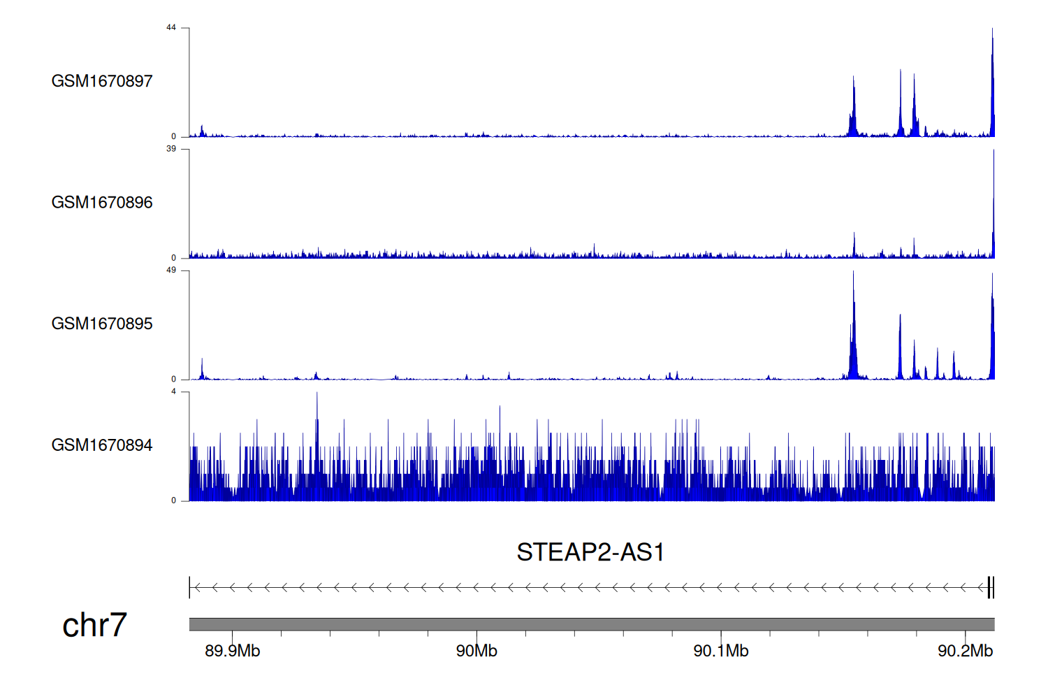 > Dataset: GSE68402 - STEAP2-AS1 peak across samples