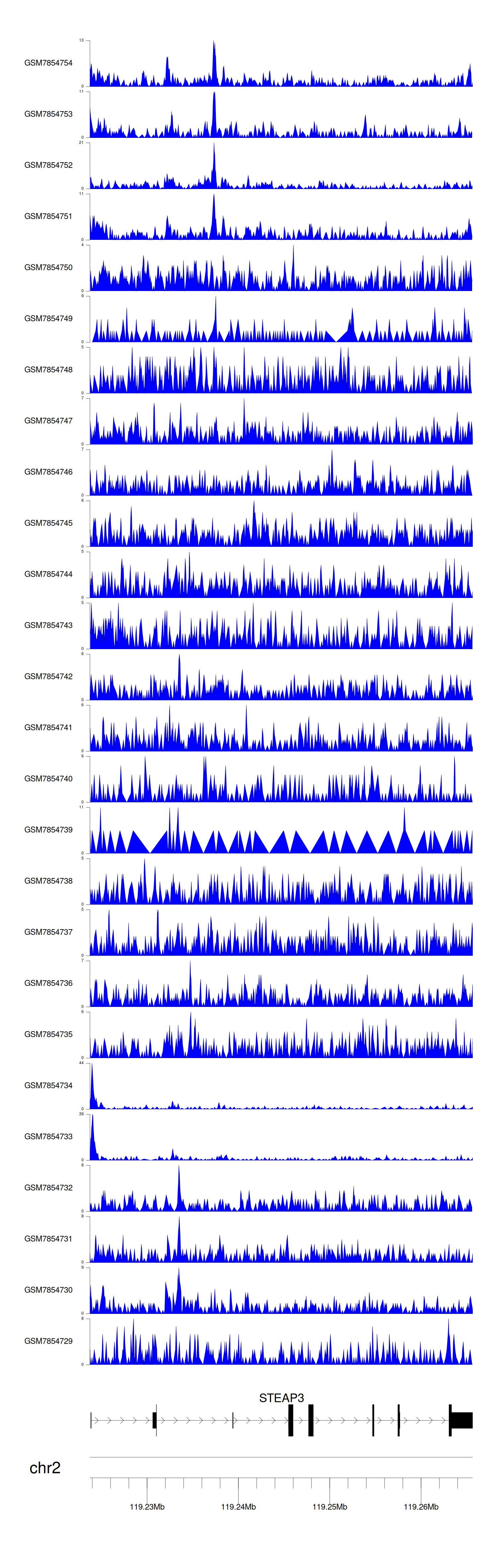 > Dataset: GSE198334 - STEAP3 peak across samples