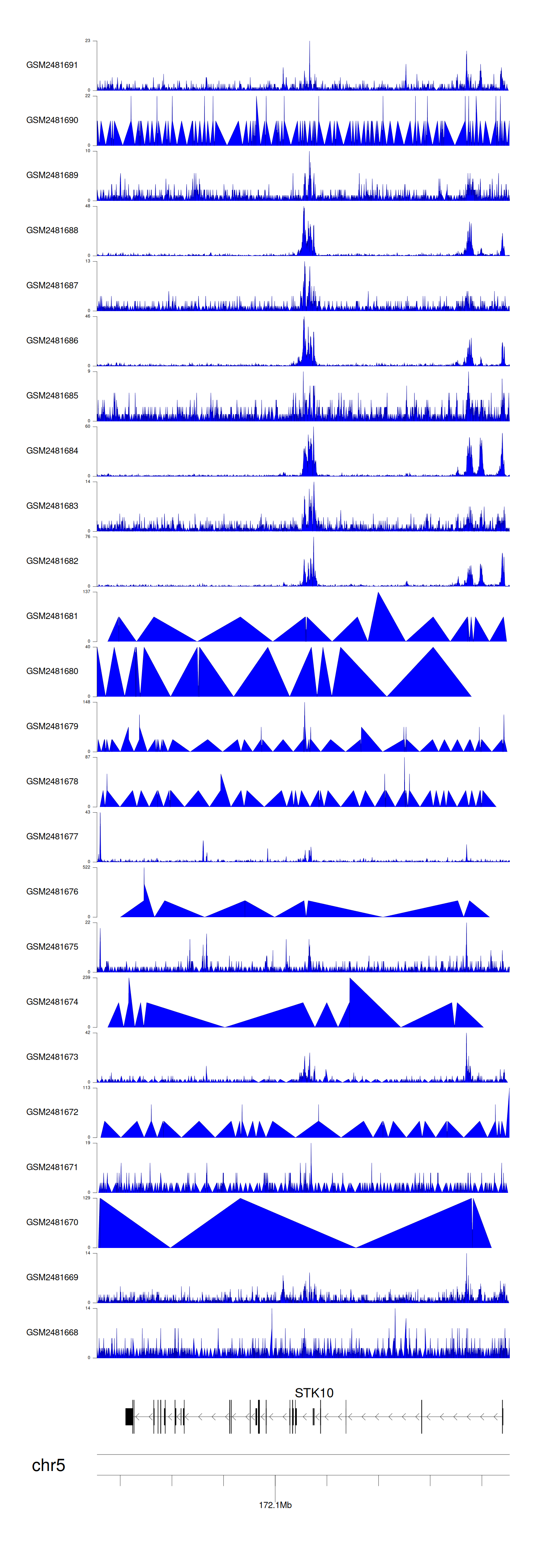 > Dataset: GSE94732 - STK10 peak across samples