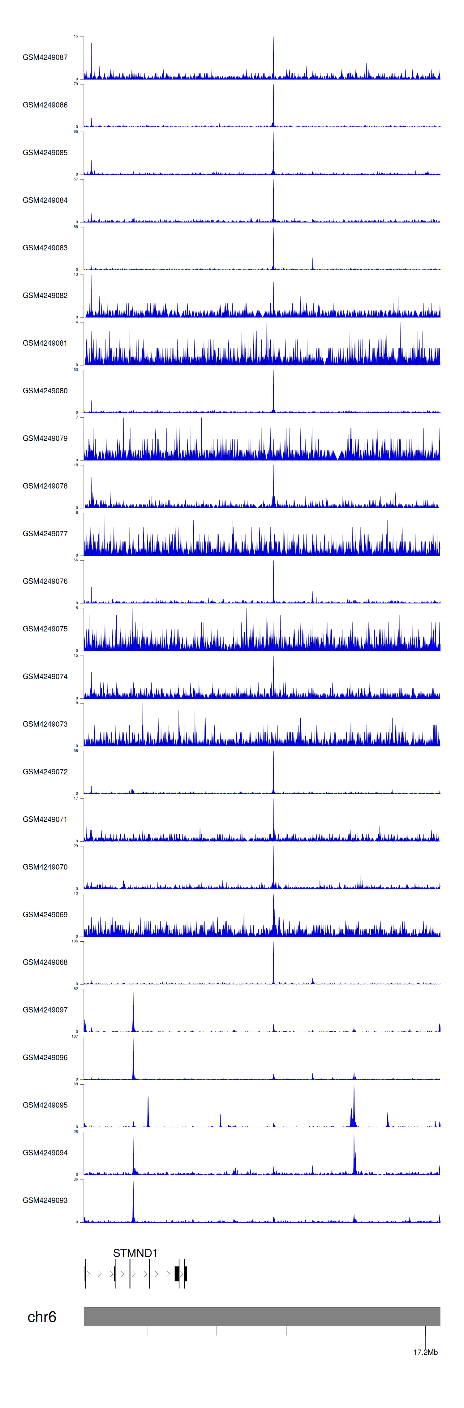 > Dataset: GSE143026 - STMND1 peak across samples