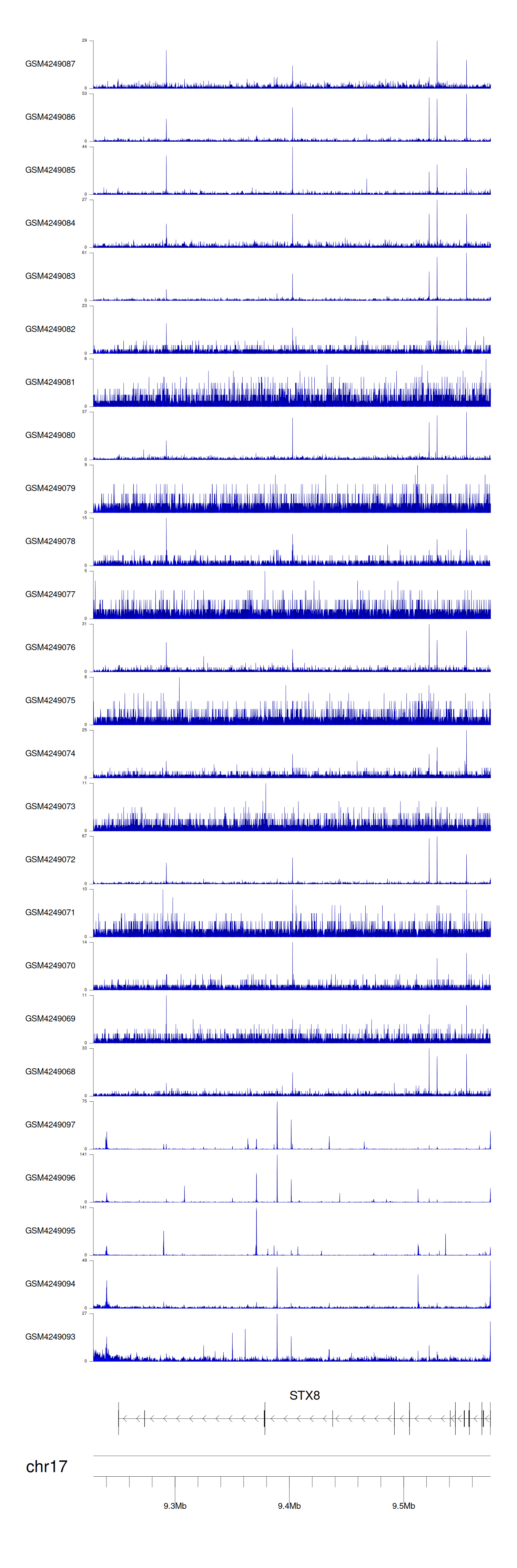 > Dataset: GSE183048 - STX8 peak across samples
