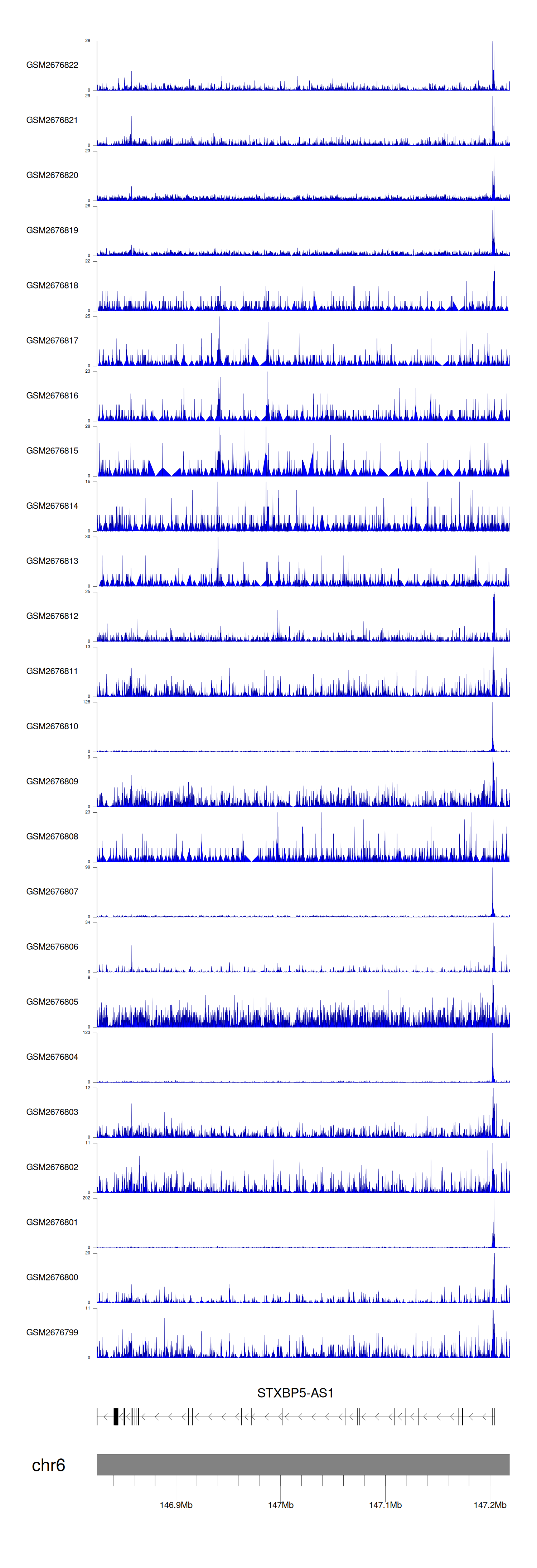 > Dataset: GSE100376 - STXBP5-AS1 peak across samples