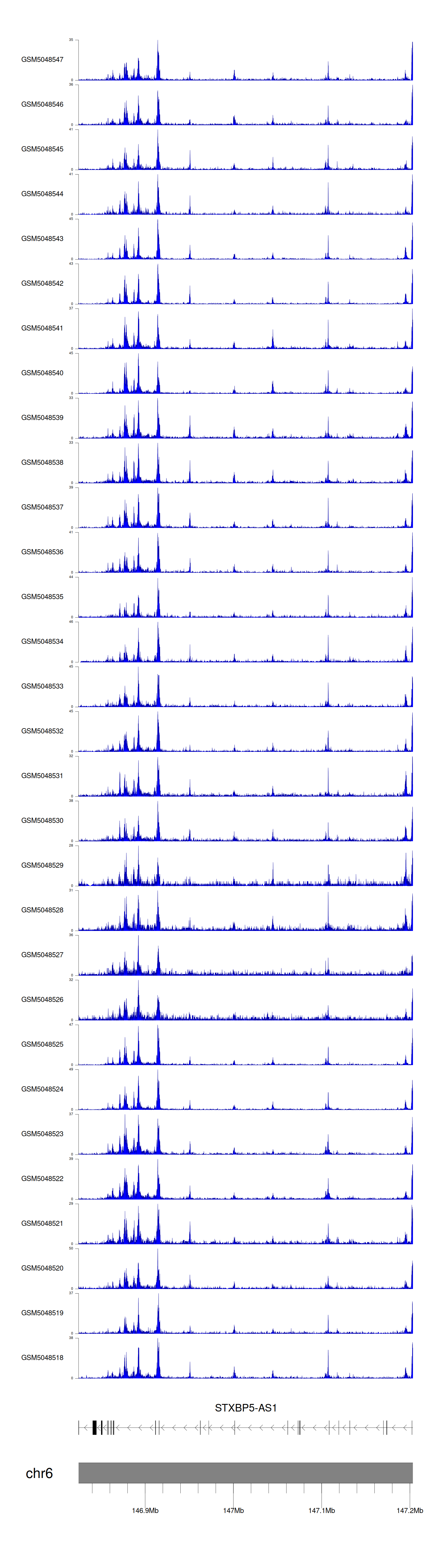 > Dataset: GSE30738 - STXBP5-AS1 peak across samples