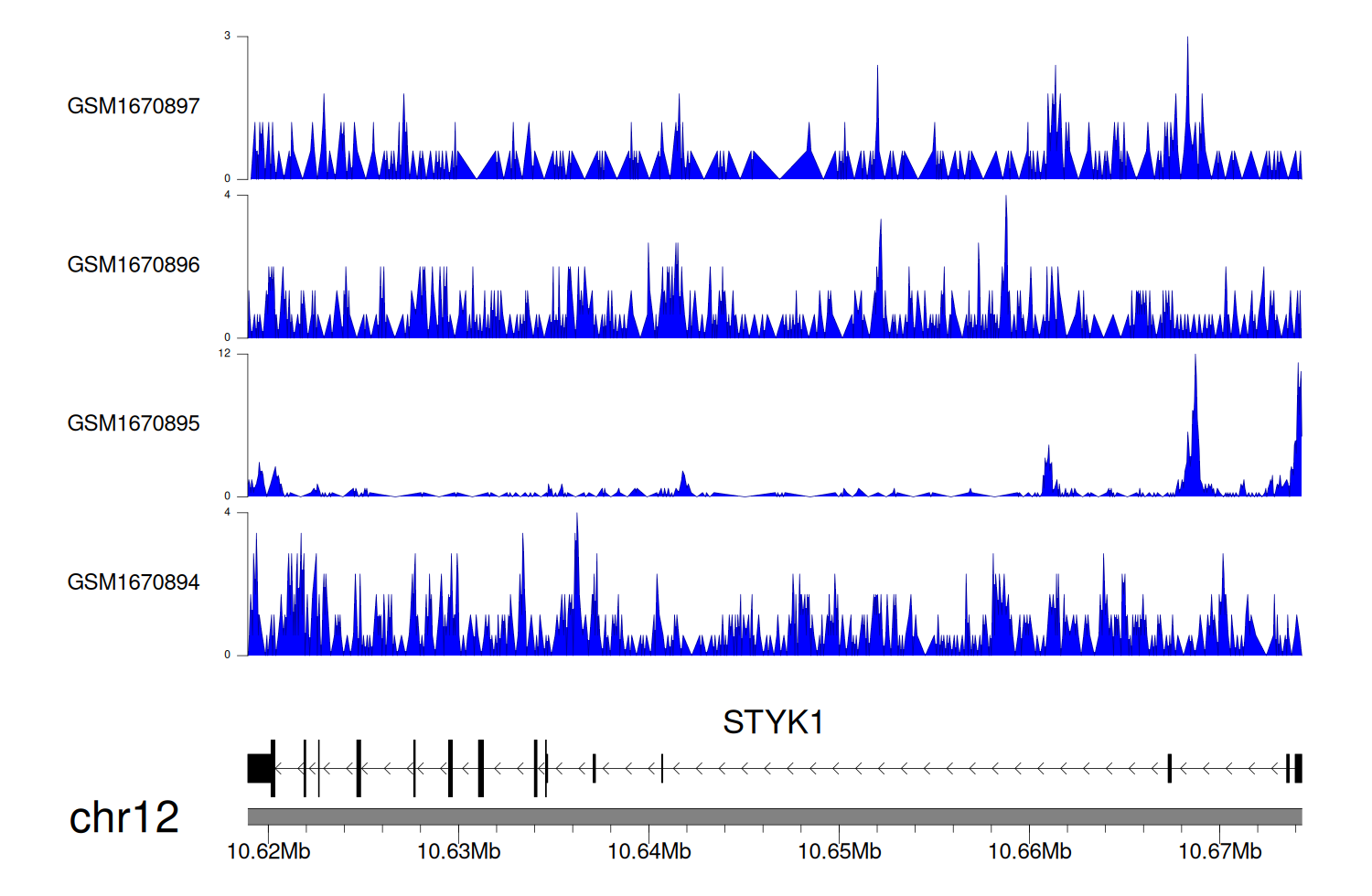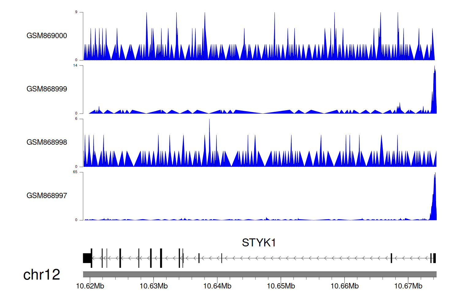 > Dataset: GSE68402 - STYK1 peak across samples