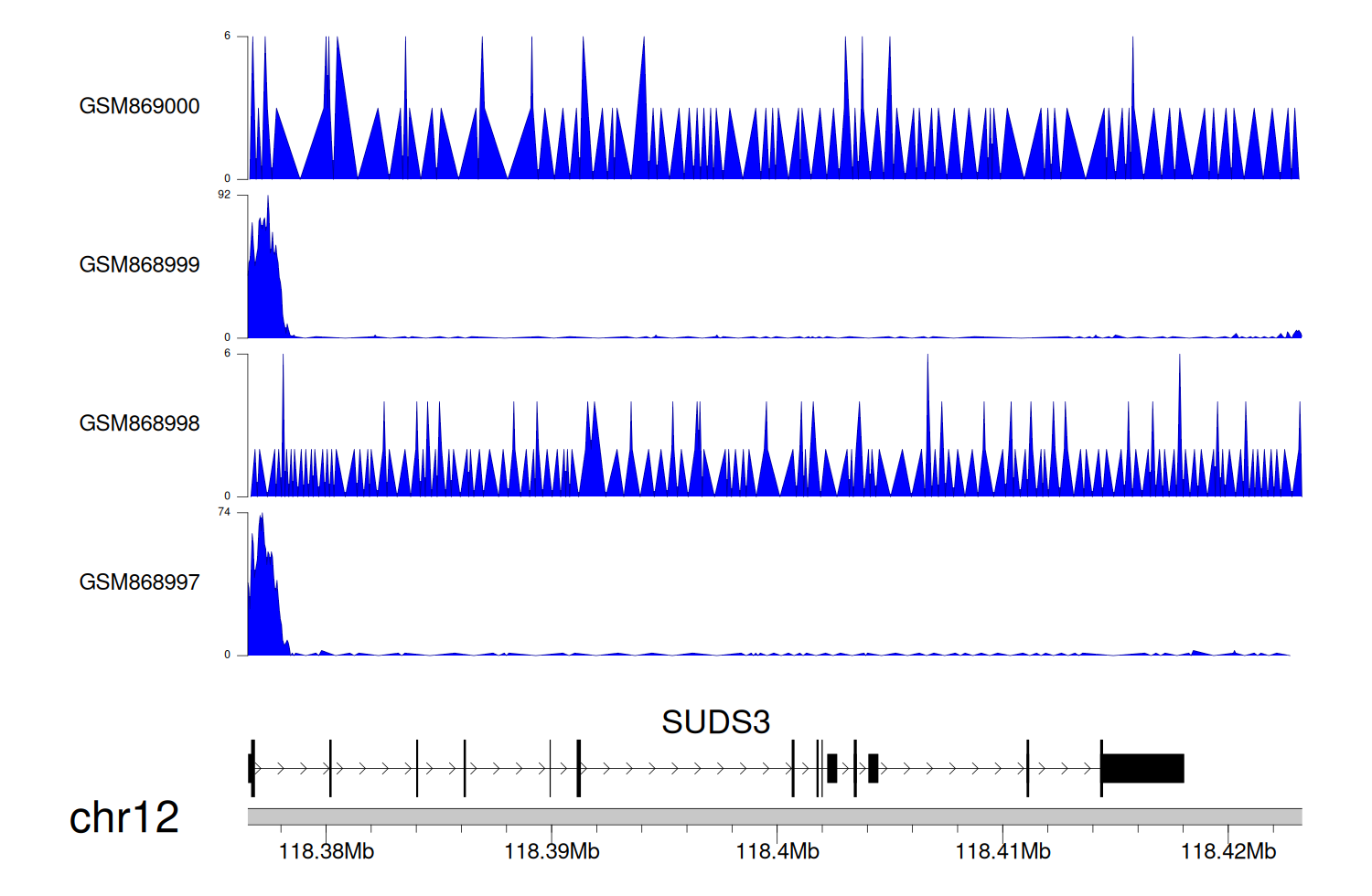 > Dataset: GSE68402 - SUDS3 peak across samples