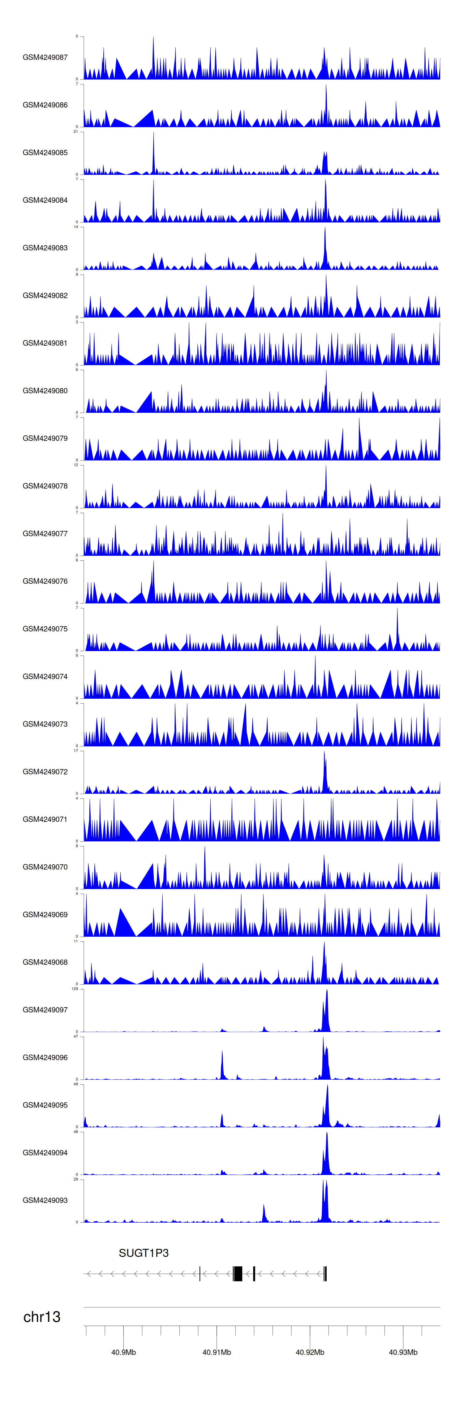 > Dataset: GSE143026 - SUGT1P3 peak across samples