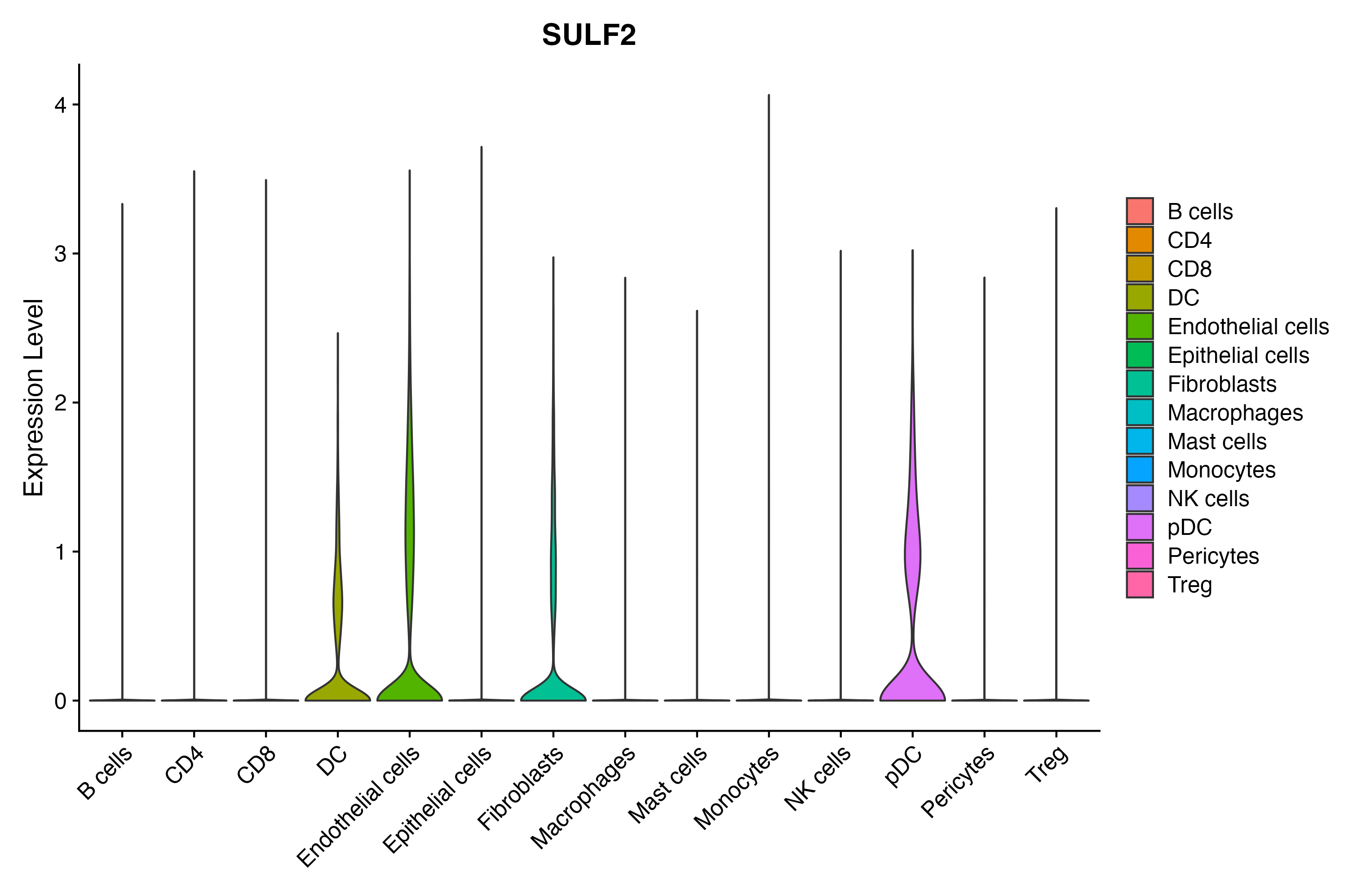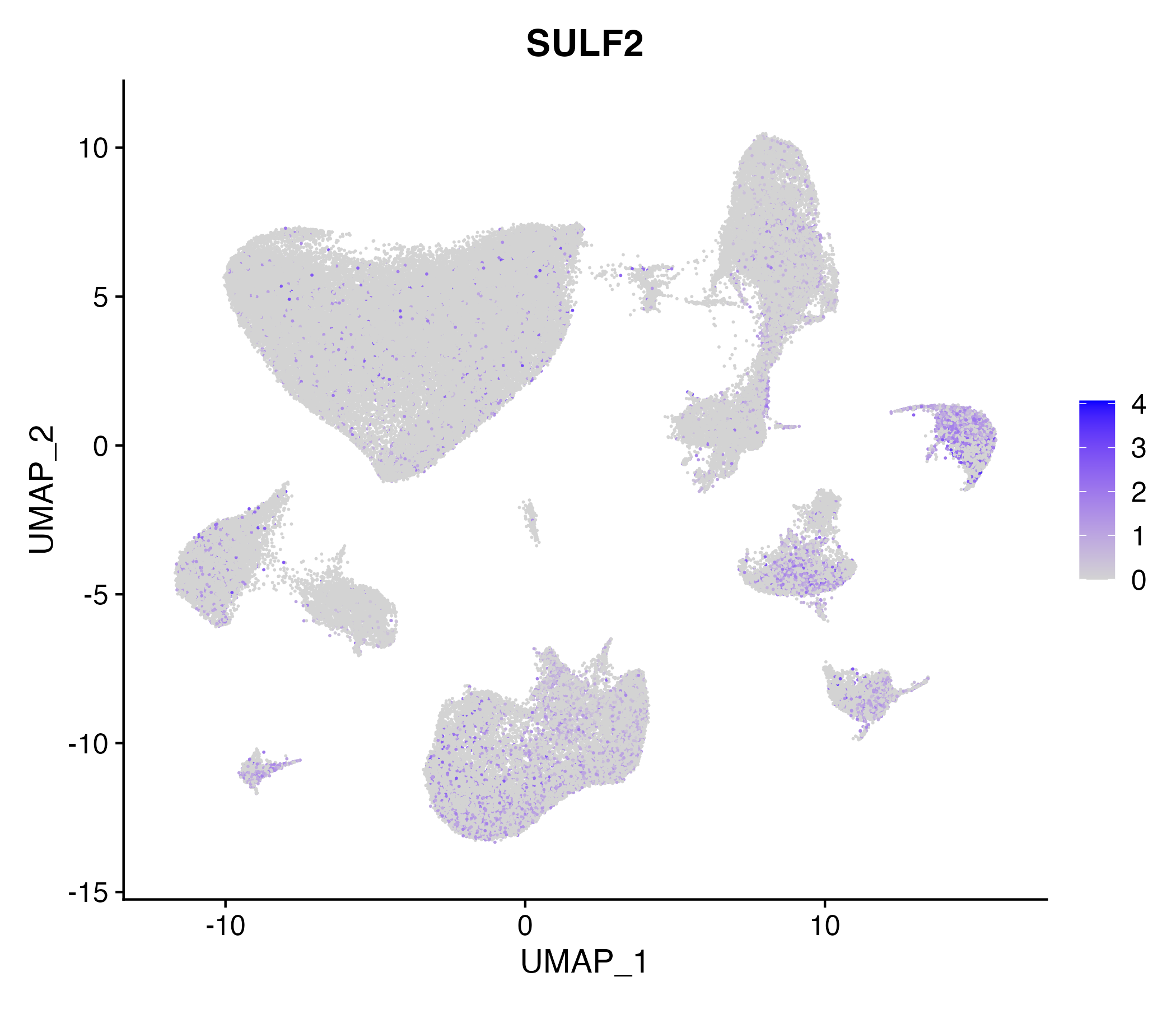 Summary Heparan sulfate proteoglycans (HSPGs) act as coreceptors for numerous heparin-binding growth factors and cytokines and are involved in cell signaling. Heparan sulfate 6-O-endosulfatases, such as SULF2, selectively remove 6-O-sulfate groups from heparan sulfate. This activity modulates the effects of heparan sulfate by altering binding sites for signaling molecules (Dai et al., 2005 [PubMed 16192265]).[supplied by OMIM, Mar 2008]