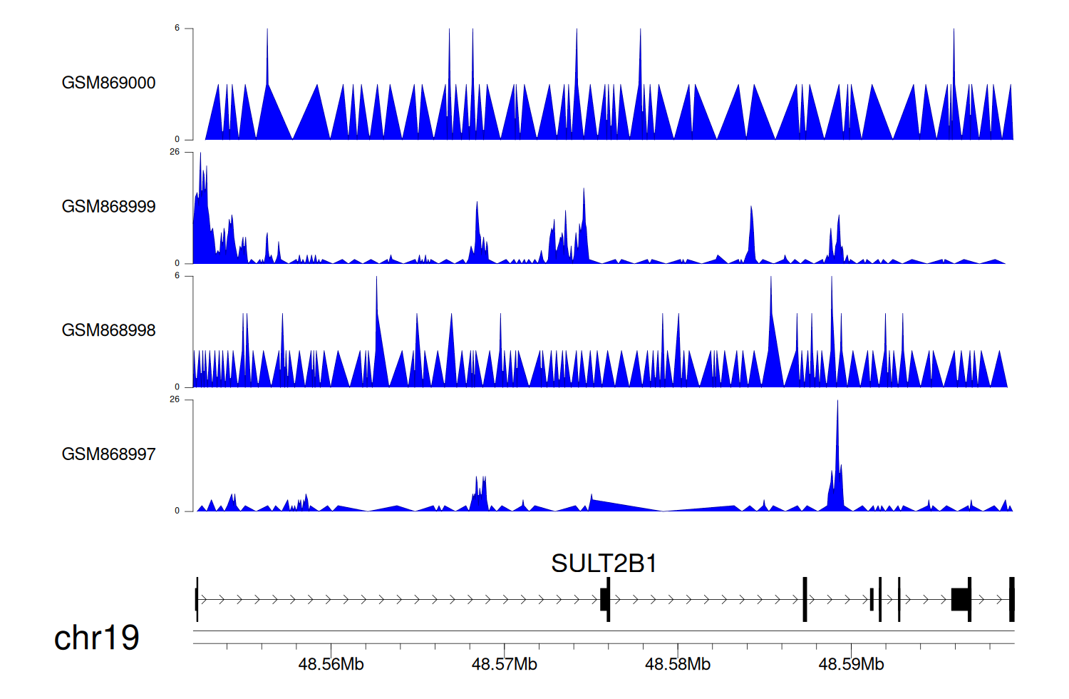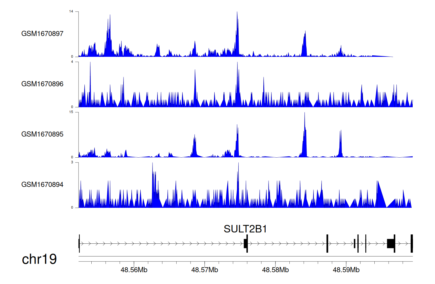 > Dataset: GSE68402 - SULT2B1 peak across samples