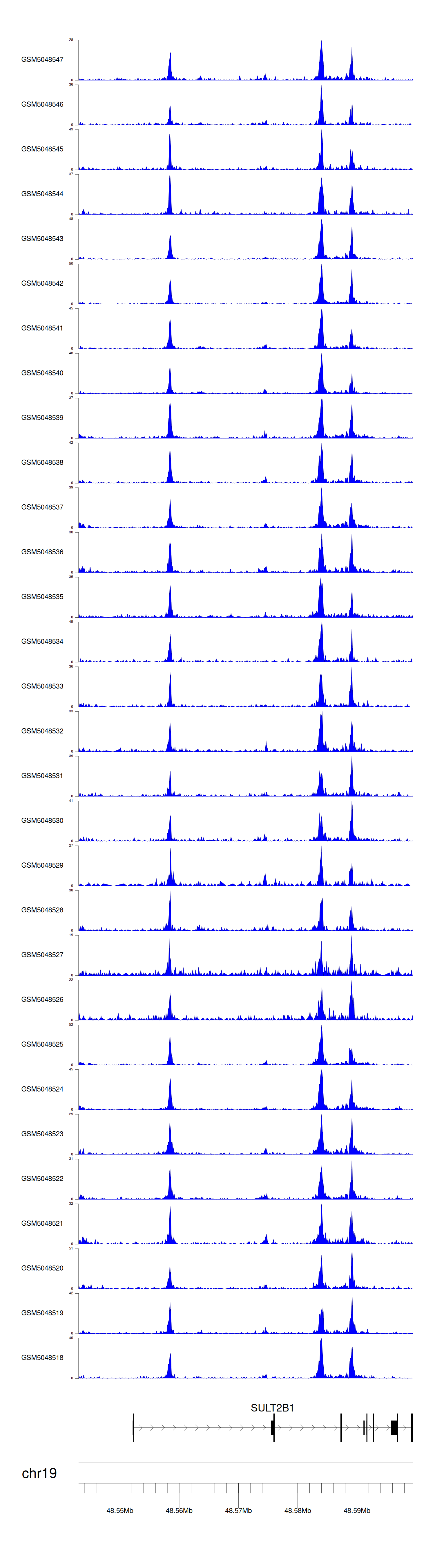 > Dataset: GSE100376 - SULT2B1 peak across samples