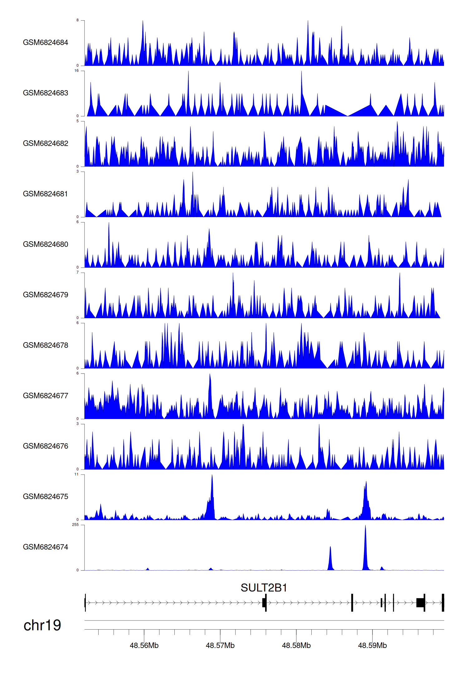 > Dataset: GSE144329 - SULT2B1 peak across samples
