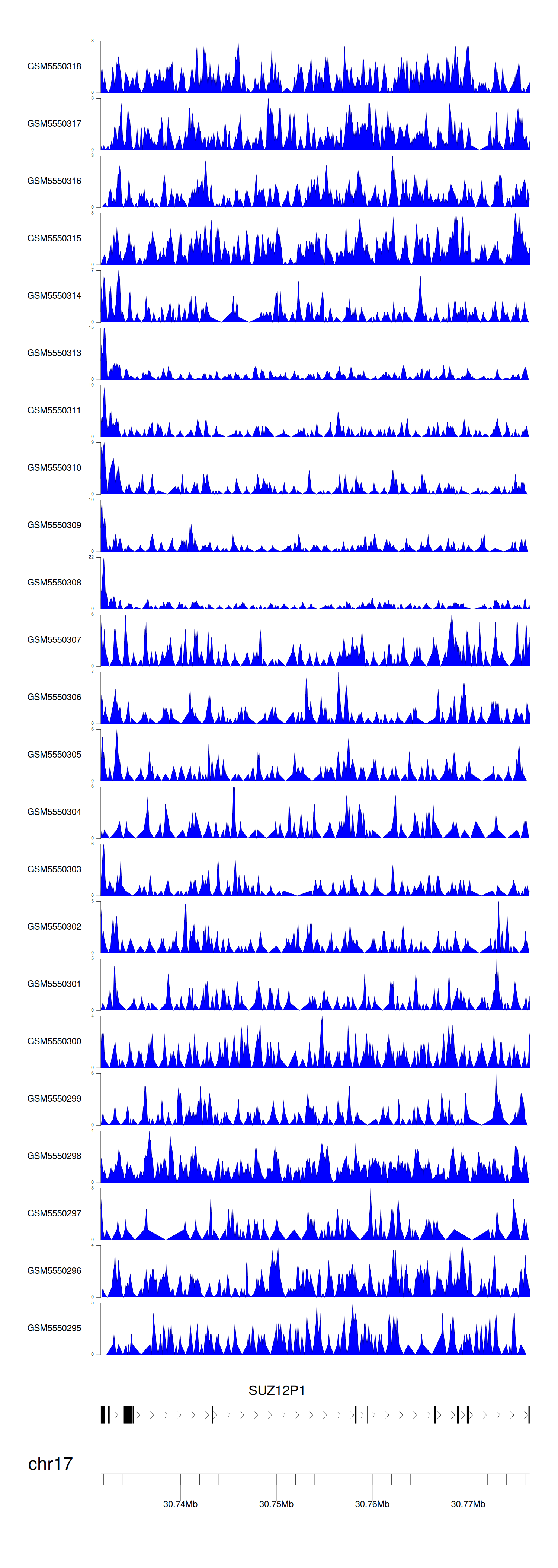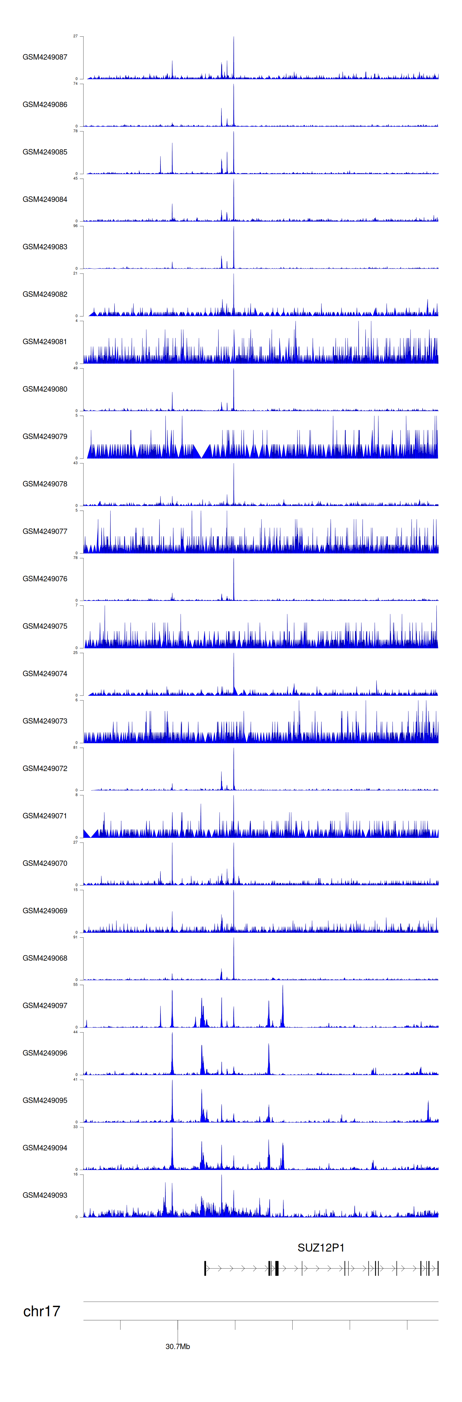 > Dataset: GSE183048 - SUZ12P1 peak across samples
