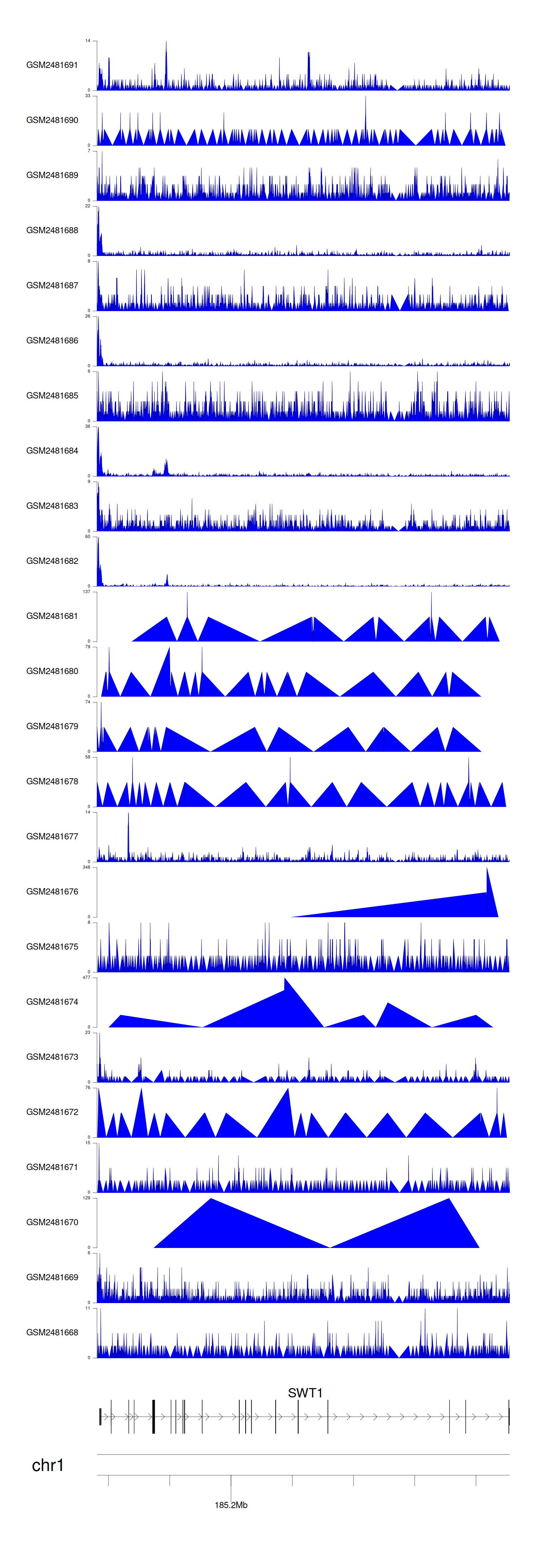 > Dataset: GSE94732 - SWT1 peak across samples