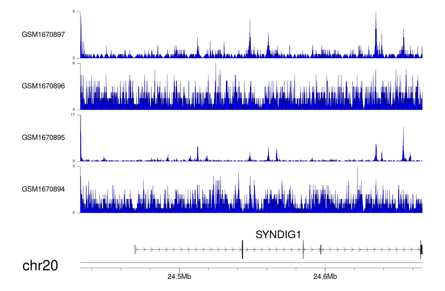 > Dataset: GSE68402 - SYNDIG1 peak across samples