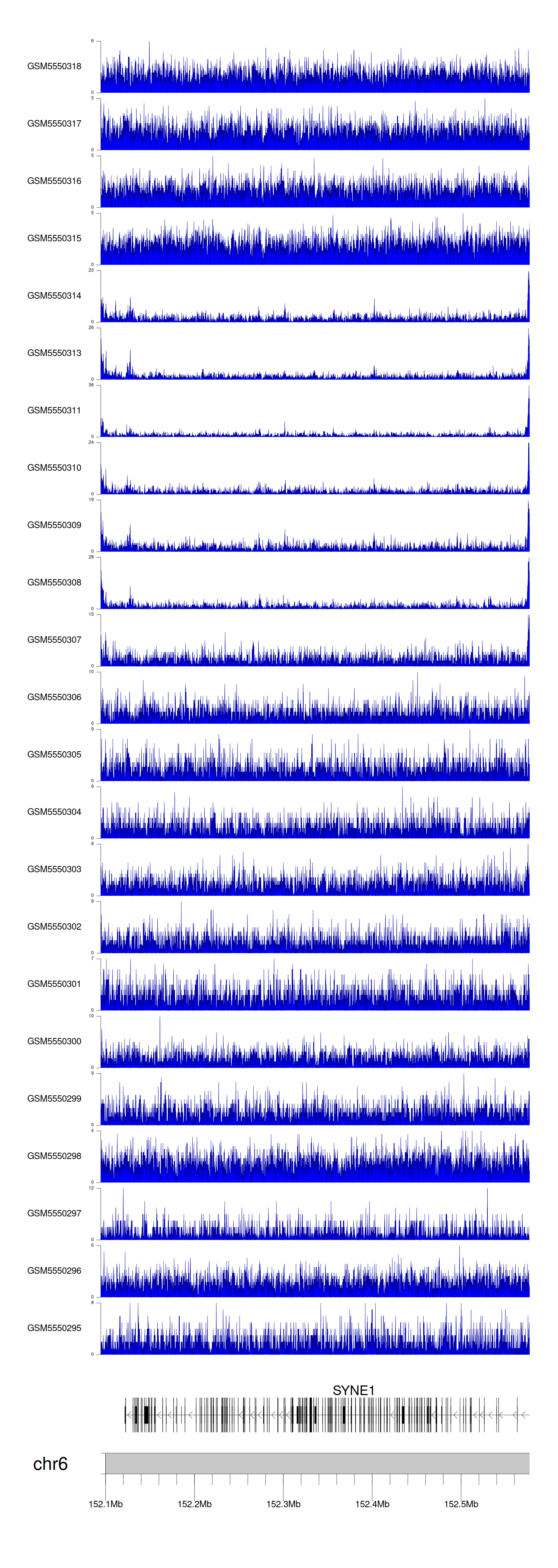 > Dataset: GSE183048 - SYNE1 peak across samples