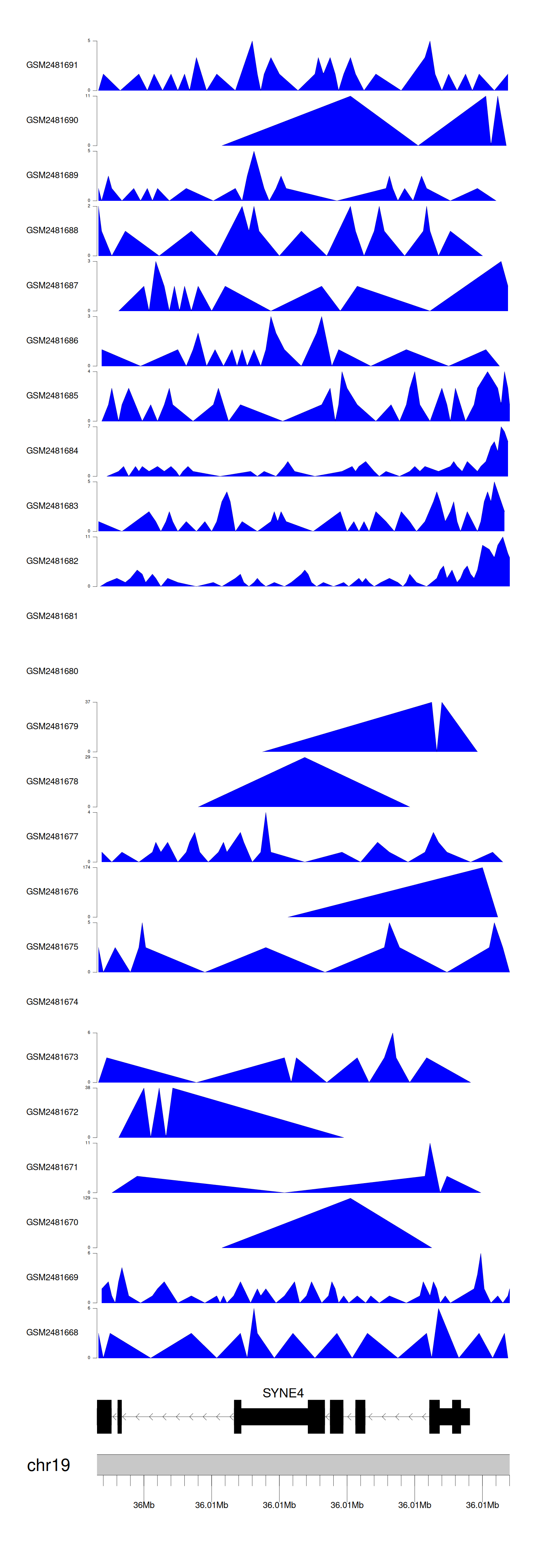 > Dataset: GSE94732 - SYNE4 peak across samples