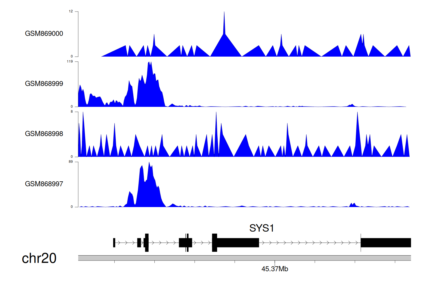 > Dataset: GSE35465 - SYS1 peak across samples