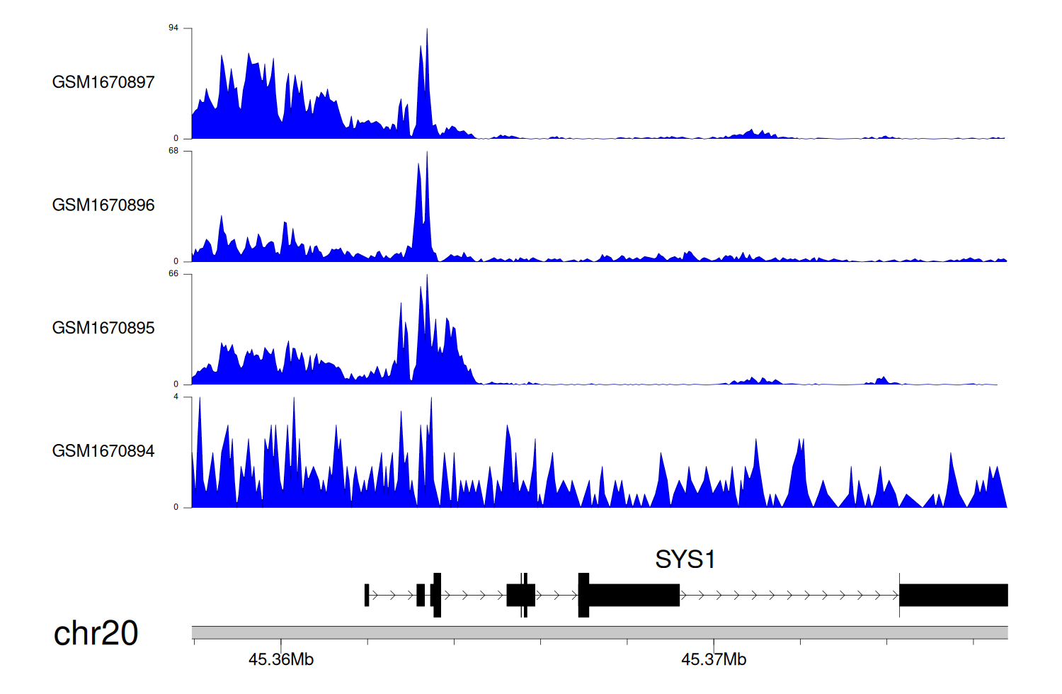 > Dataset: GSE68402 - SYS1 peak across samples