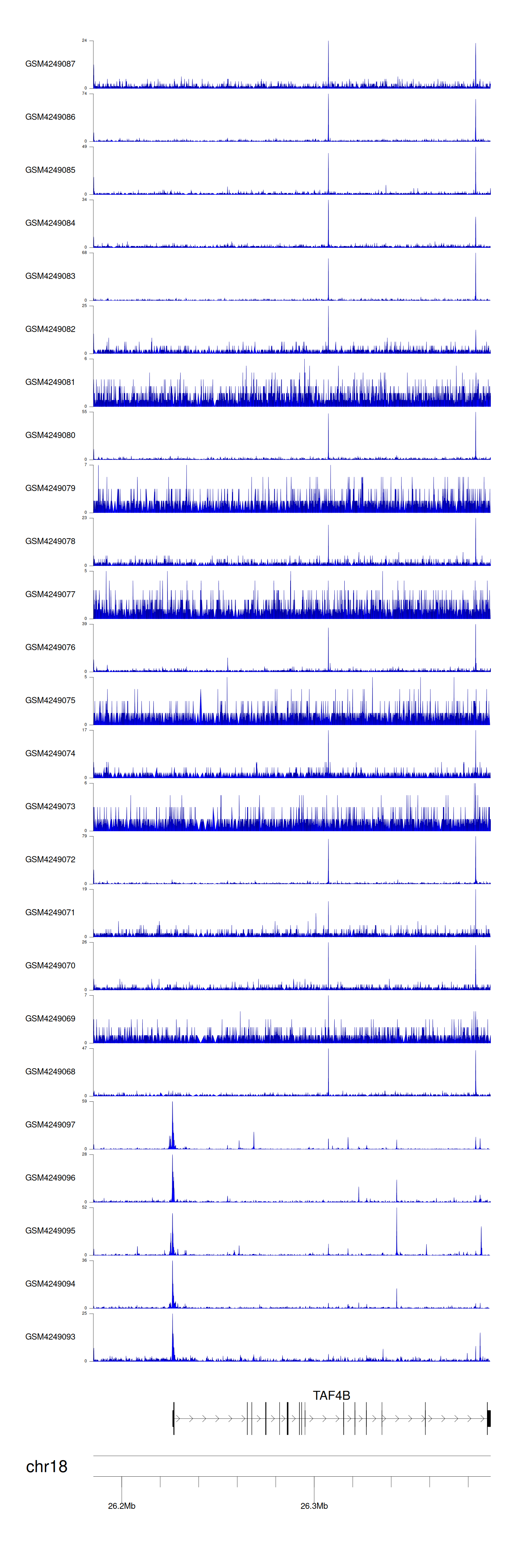 > Dataset: GSE143026 - TAF4B peak across samples