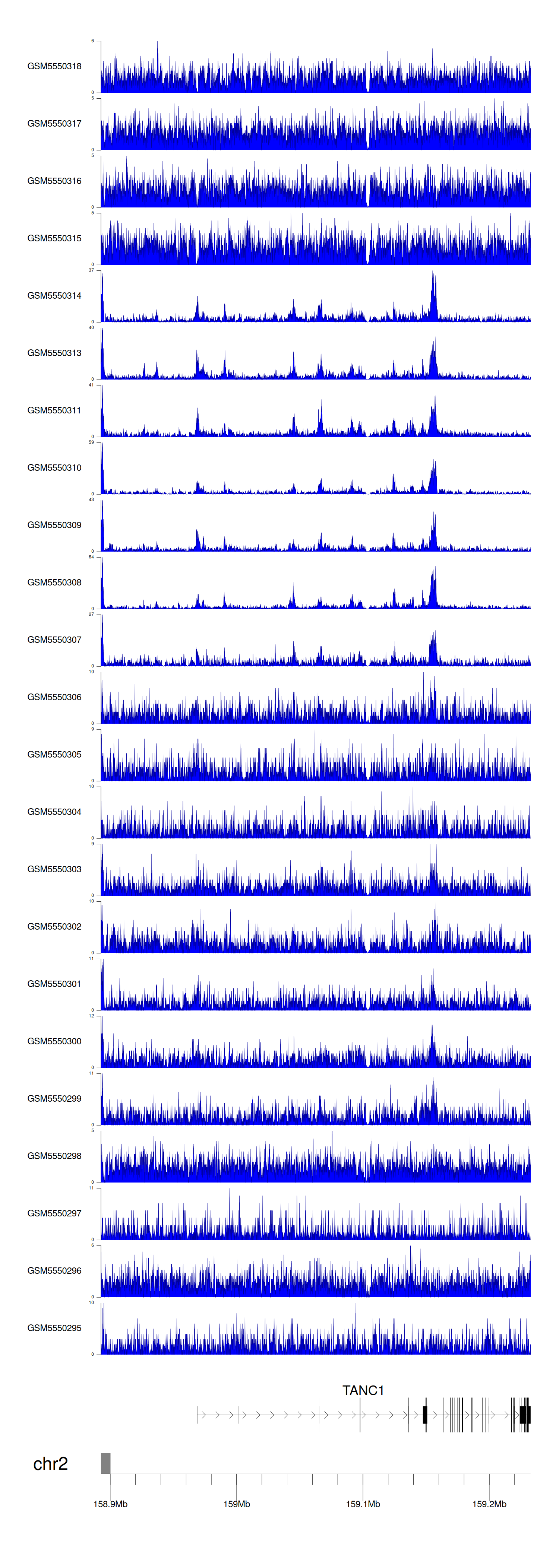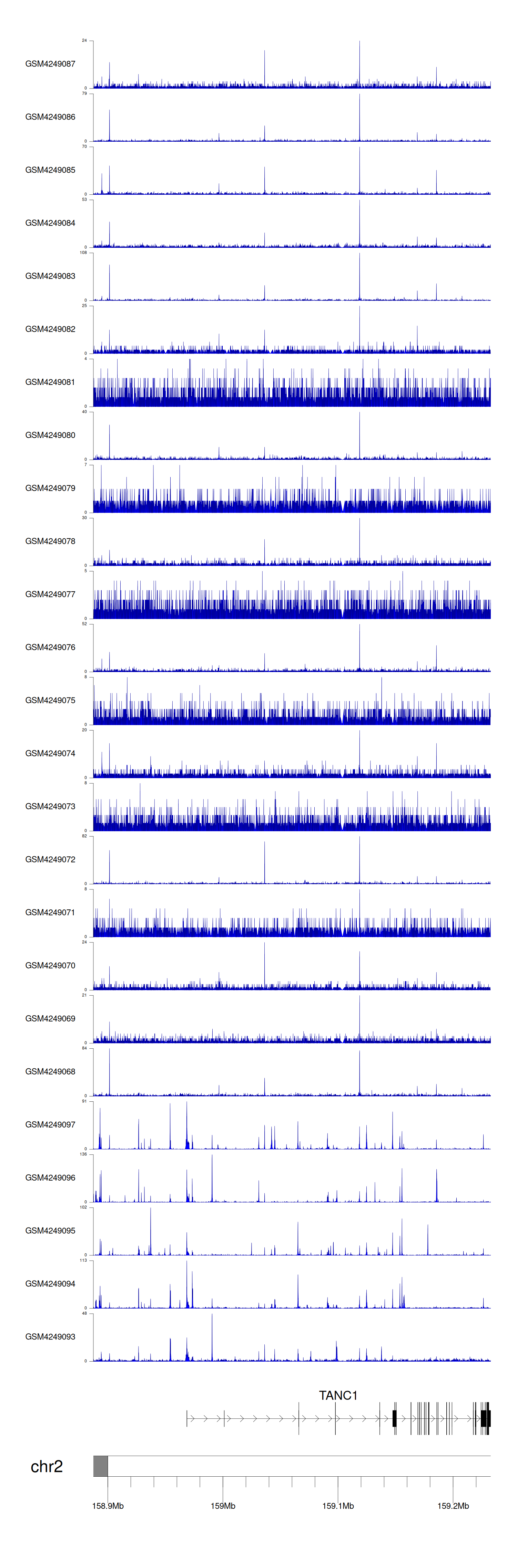 > Dataset: GSE183048 - TANC1 peak across samples