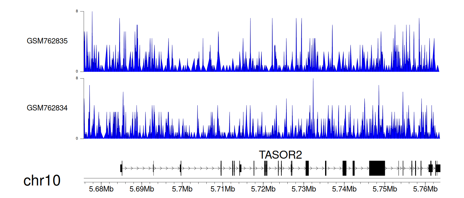 > Dataset: GSE30738 - TASOR2 peak across samples