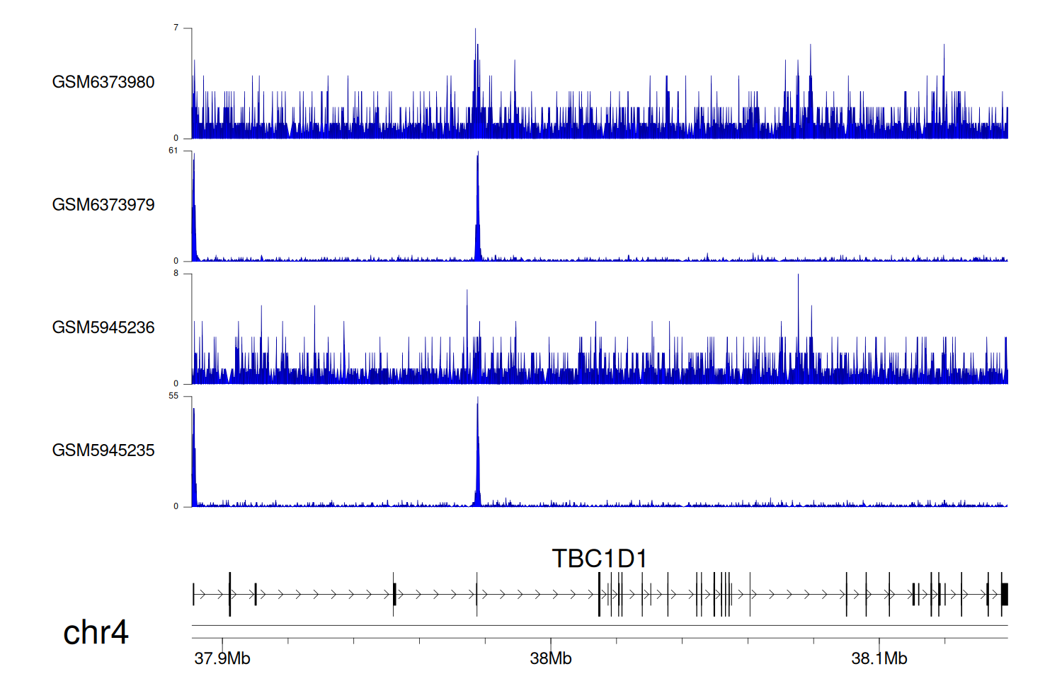 > Dataset: GSE225248 - TBC1D1 peak across samples
