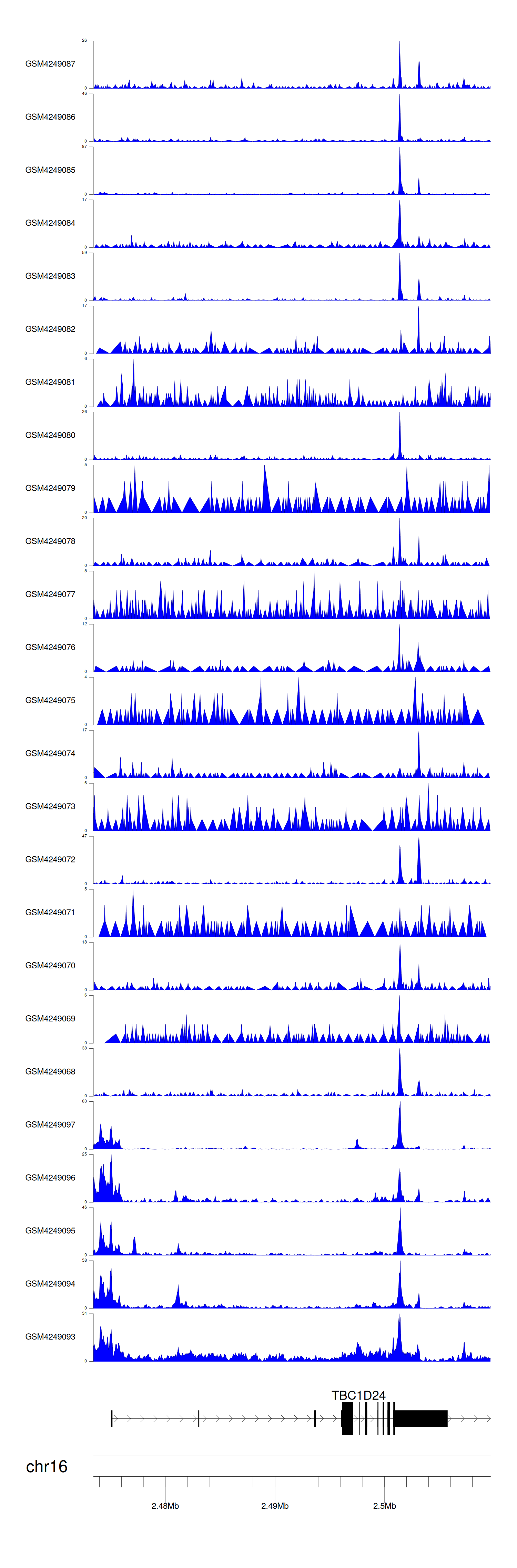 > Dataset: GSE143026 - TBC1D24 peak across samples