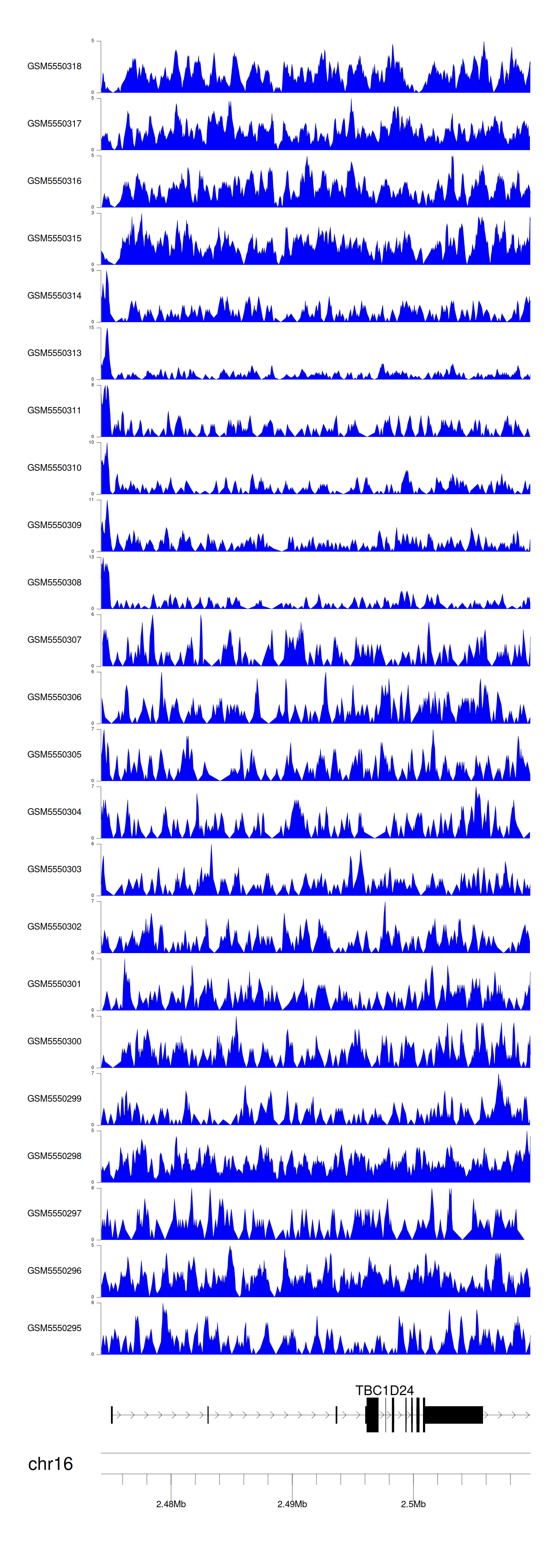 > Dataset: GSE183048 - TBC1D24 peak across samples