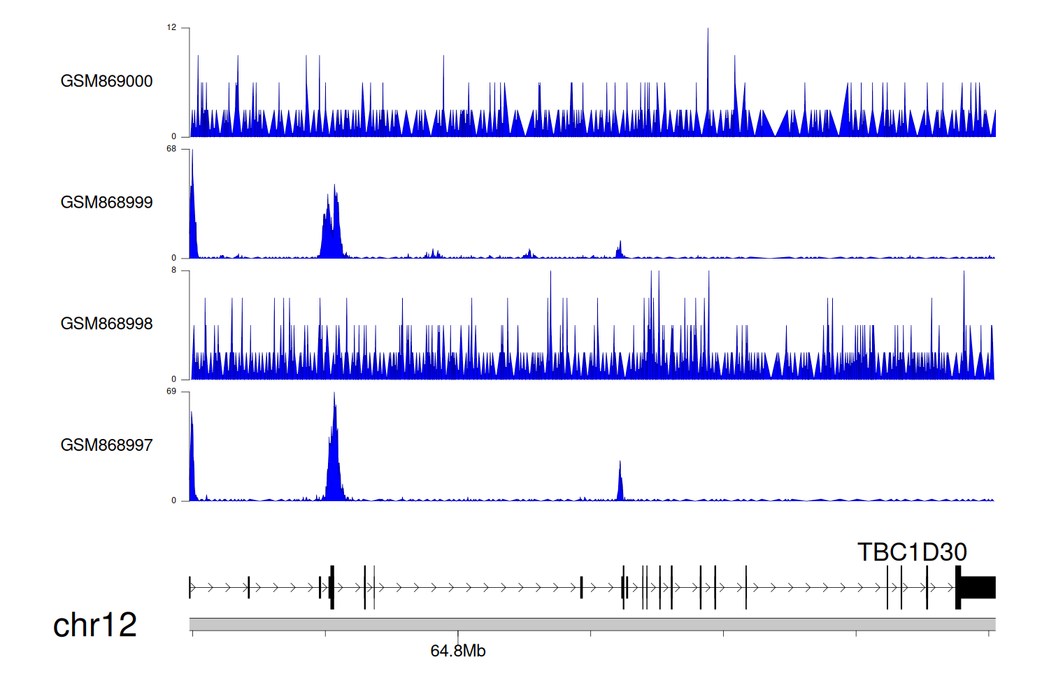 > Dataset: GSE68402 - TBC1D30 peak across samples