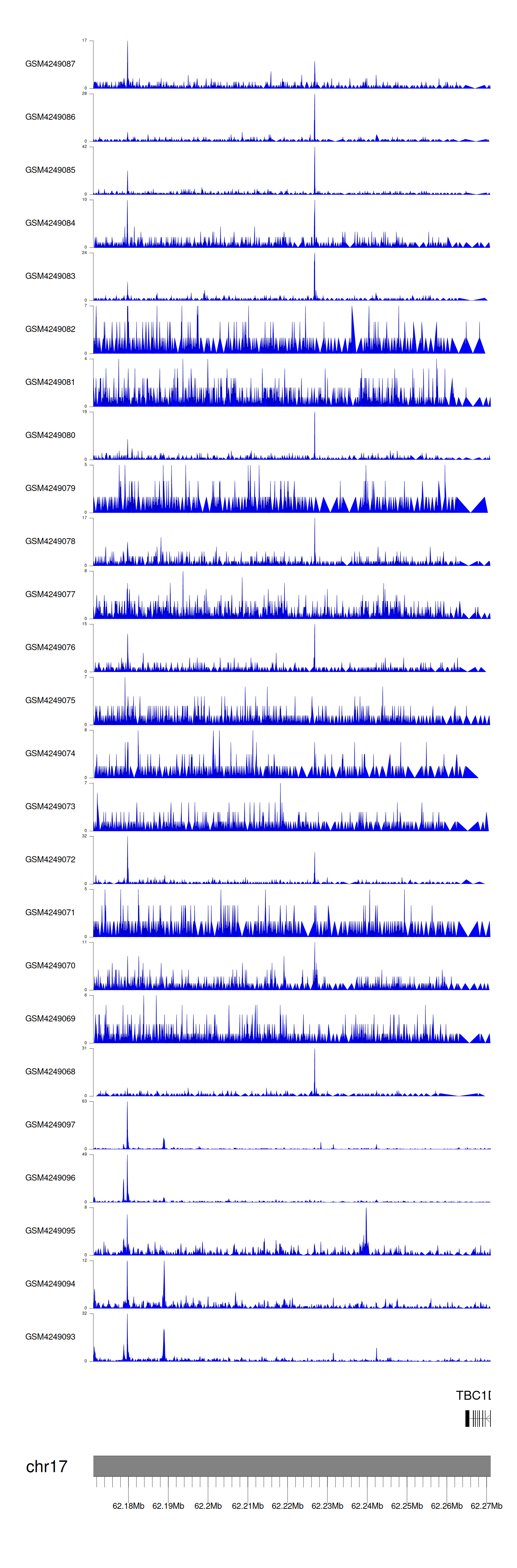 > Dataset: GSE143026 - TBC1D3P2 peak across samples