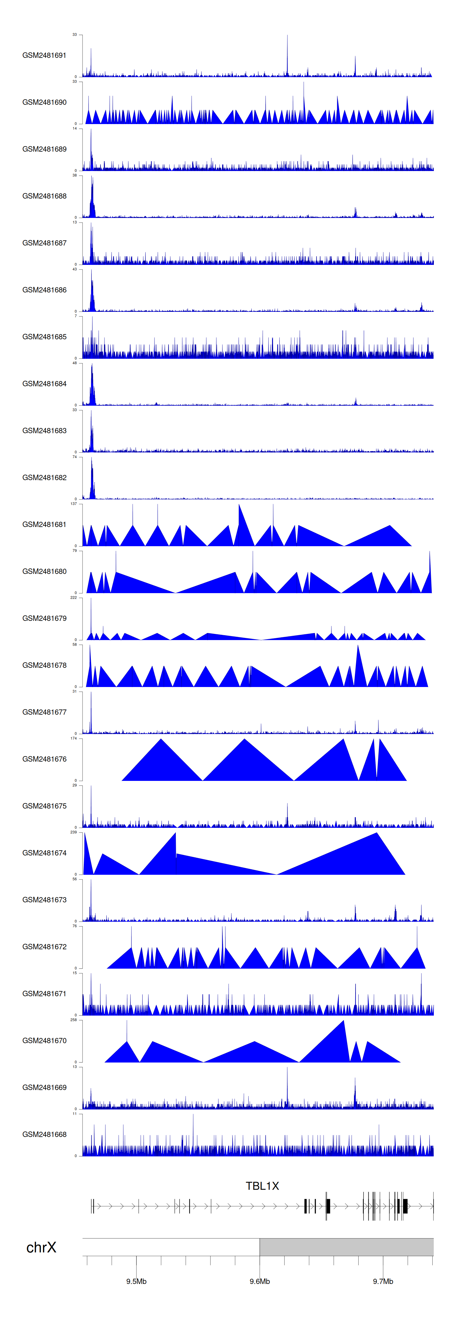> Dataset: GSE94732 - TBL1X peak across samples