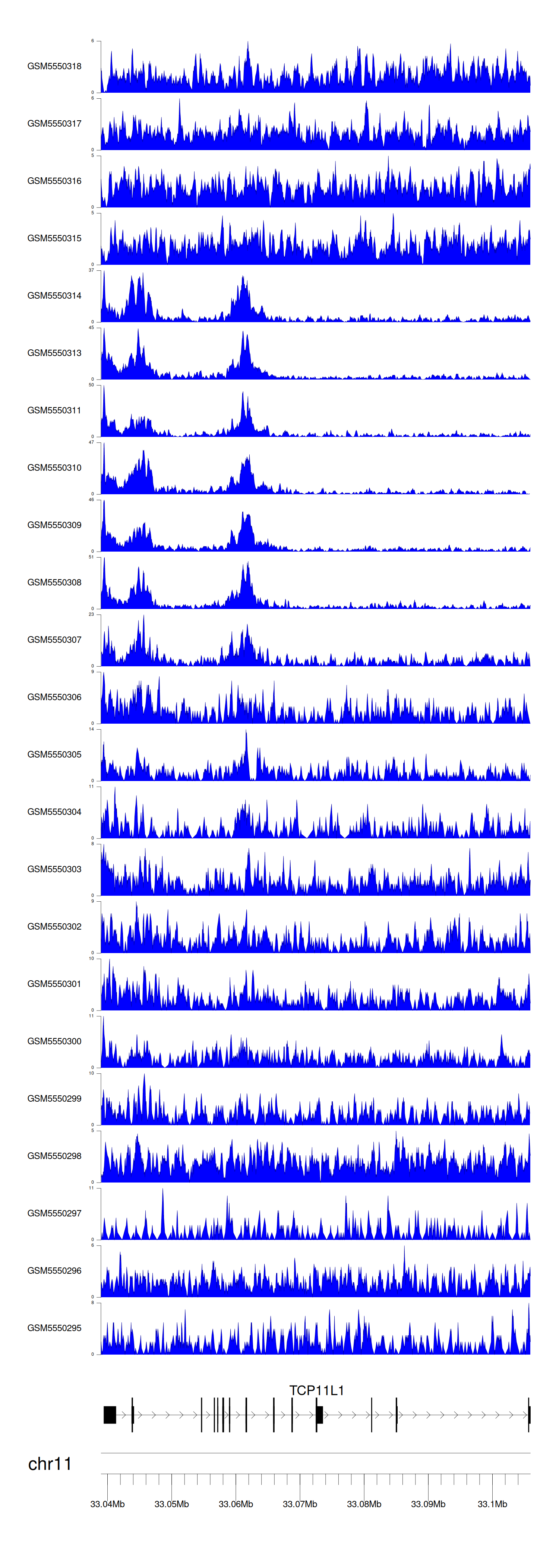 > Dataset: GSE143026 - TCP11L1 peak across samples