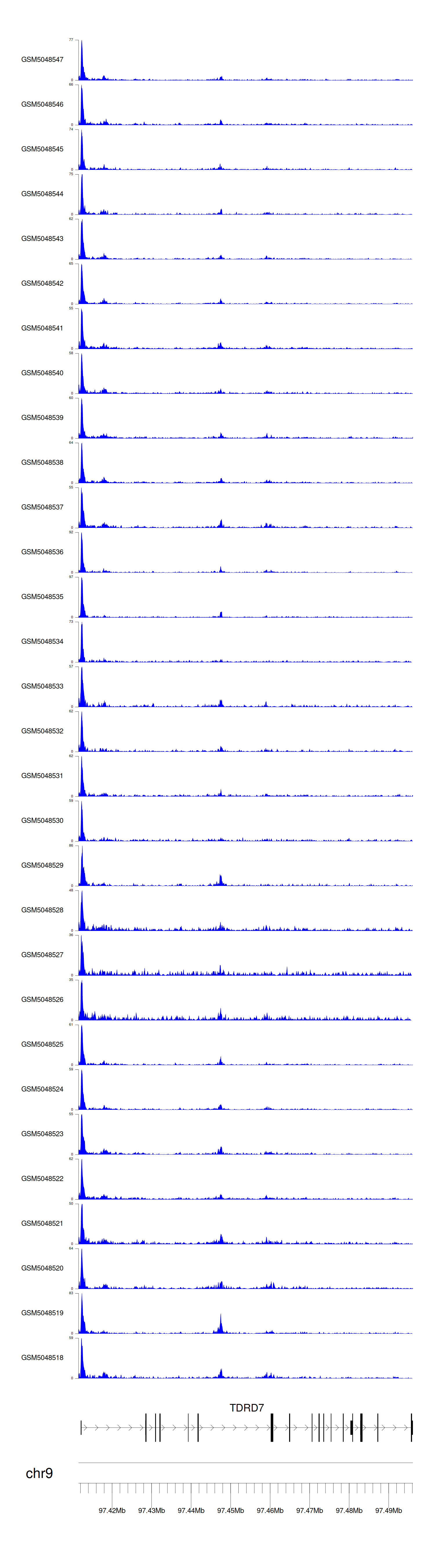 > Dataset: GSE30738 - TDRD7 peak across samples