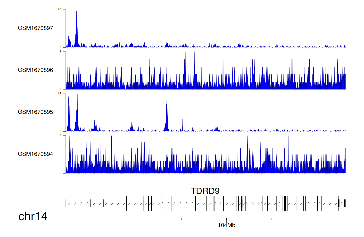 > Dataset: GSE68402 - TDRD9 peak across samples