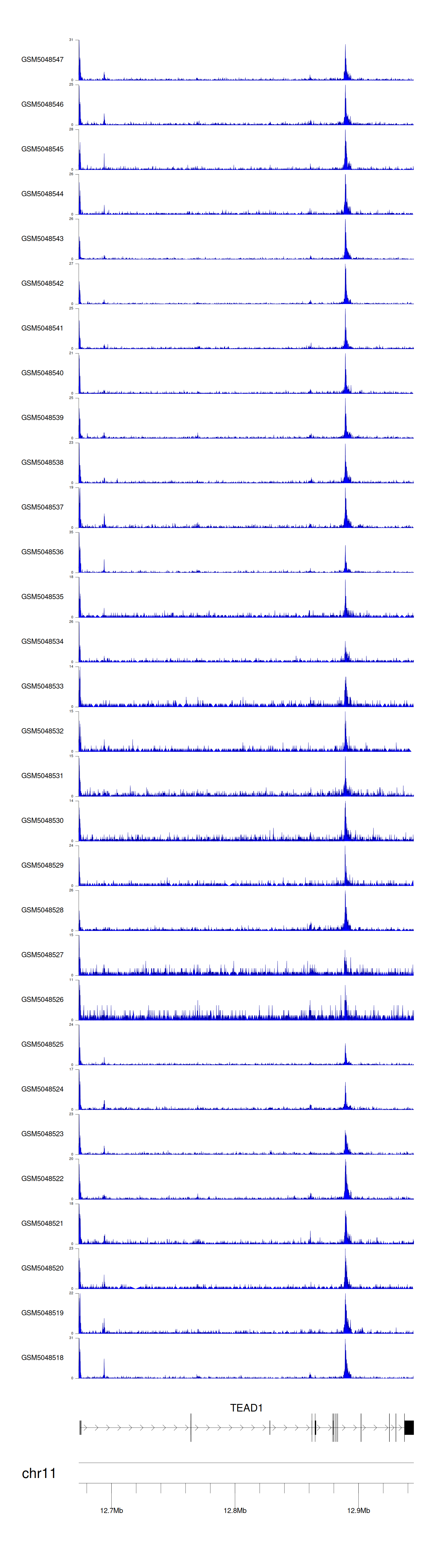 > Dataset: GSE30738 - TEAD1 peak across samples