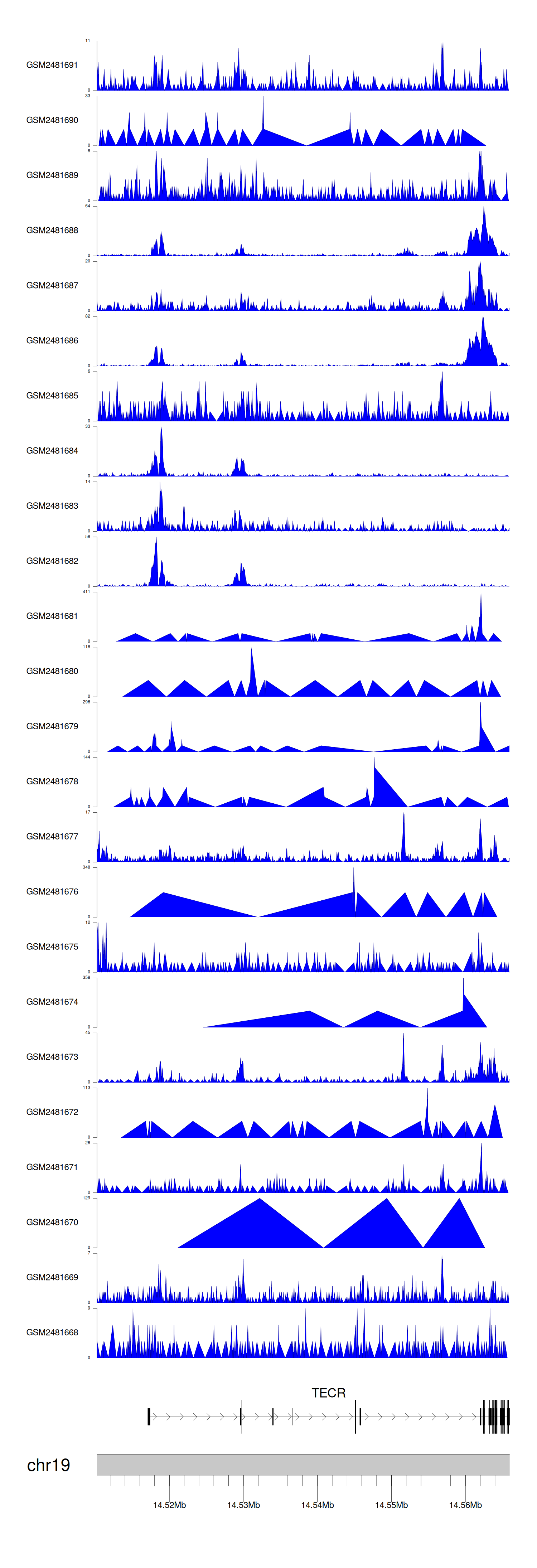> Dataset: GSE94732 - TECR peak across samples