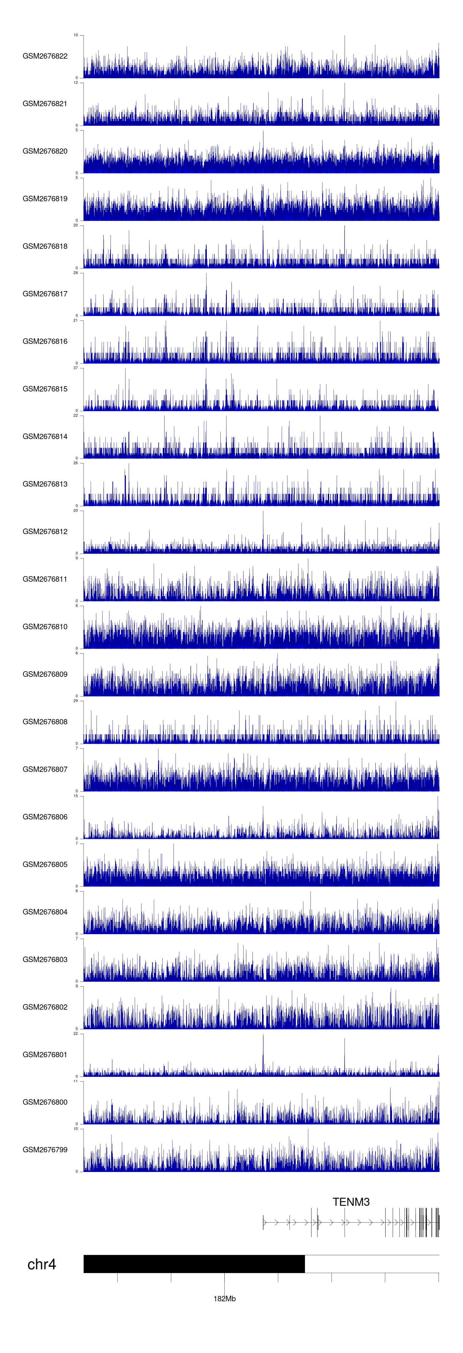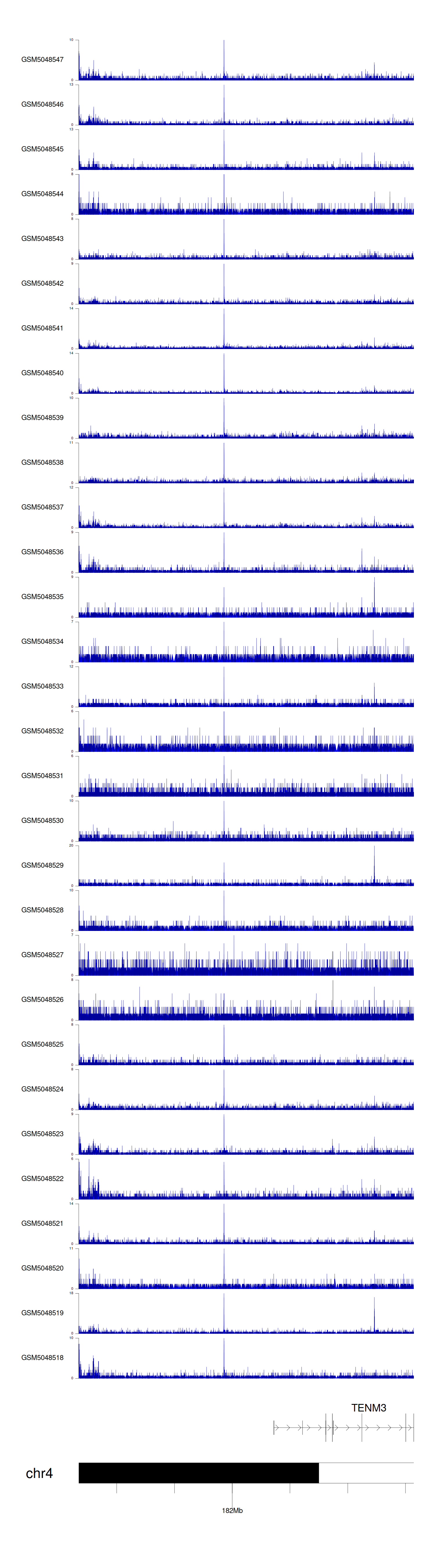 > Dataset: GSE165703 - TENM3 peak across samples