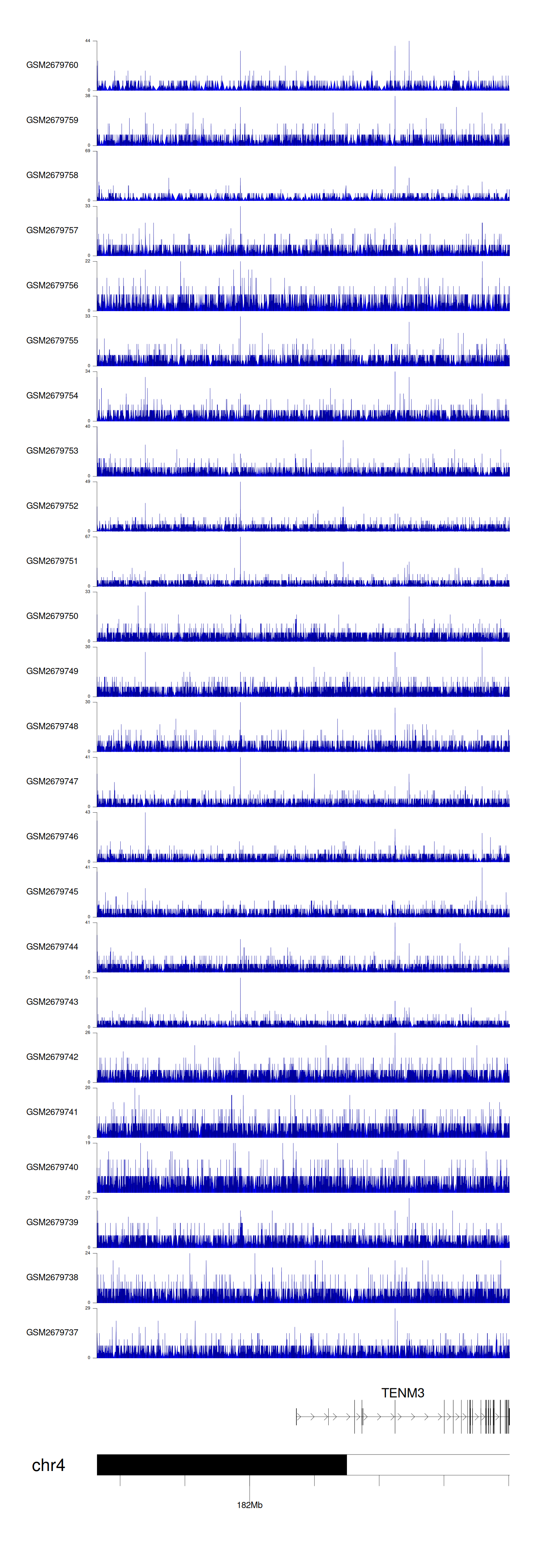> Dataset: GSE30738 - TENM3 peak across samples