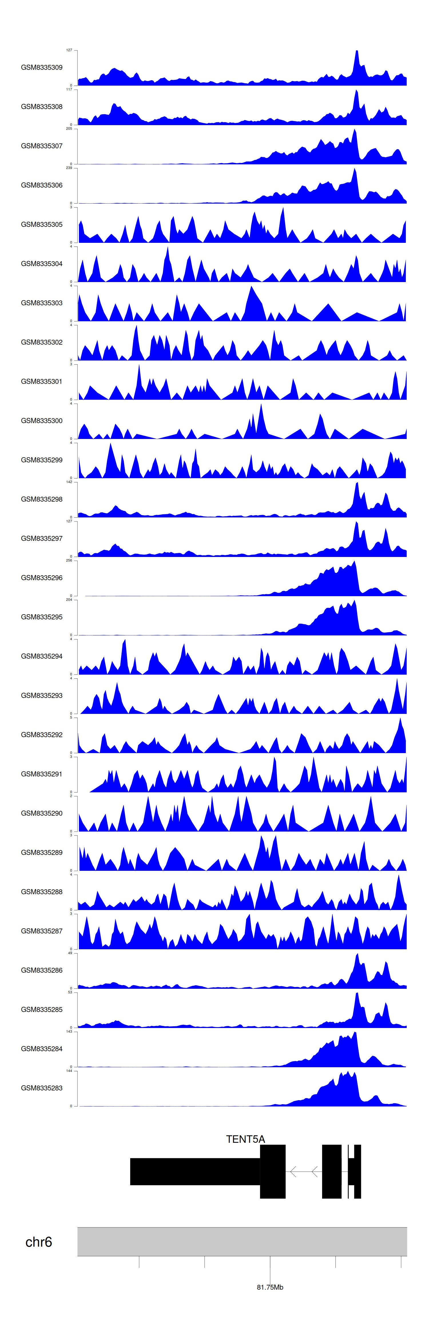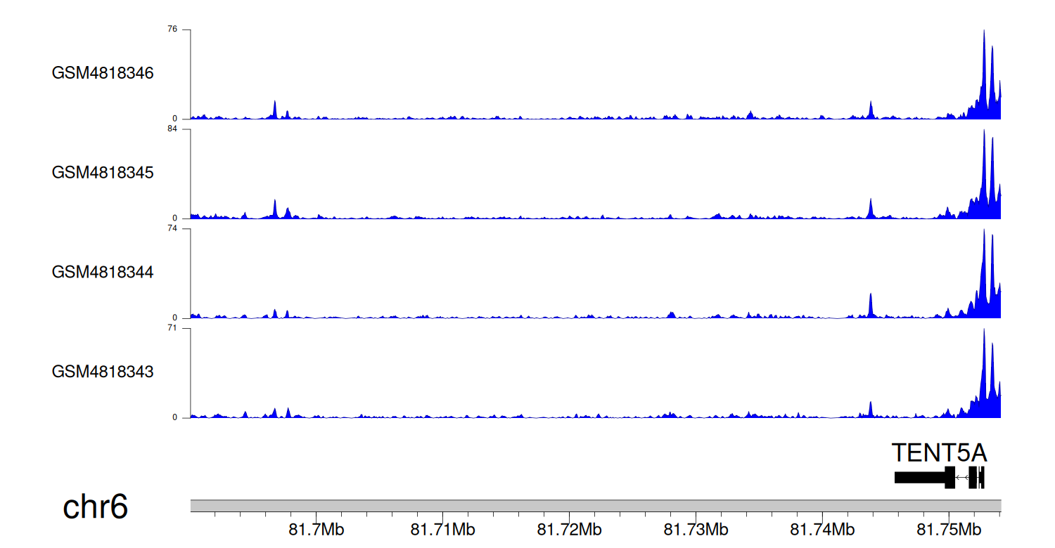 > Dataset: GSE131257 - TENT5A peak across samples
